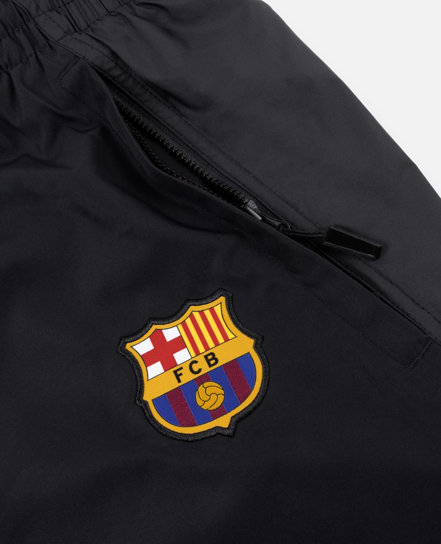 The FCB x Patta Culers del Món Track Pants is crafted from 100% Polyester. The Track Pants feature an elasticated drawstring waistband, two side pockets with zippers, a back pocket with a zipper and adjustable bottom hems. The right hand side of the pants are adorned with an embroidered Patta script logo and a Nike swoosh. The left hand side sees a woven FC Barcelona badge.