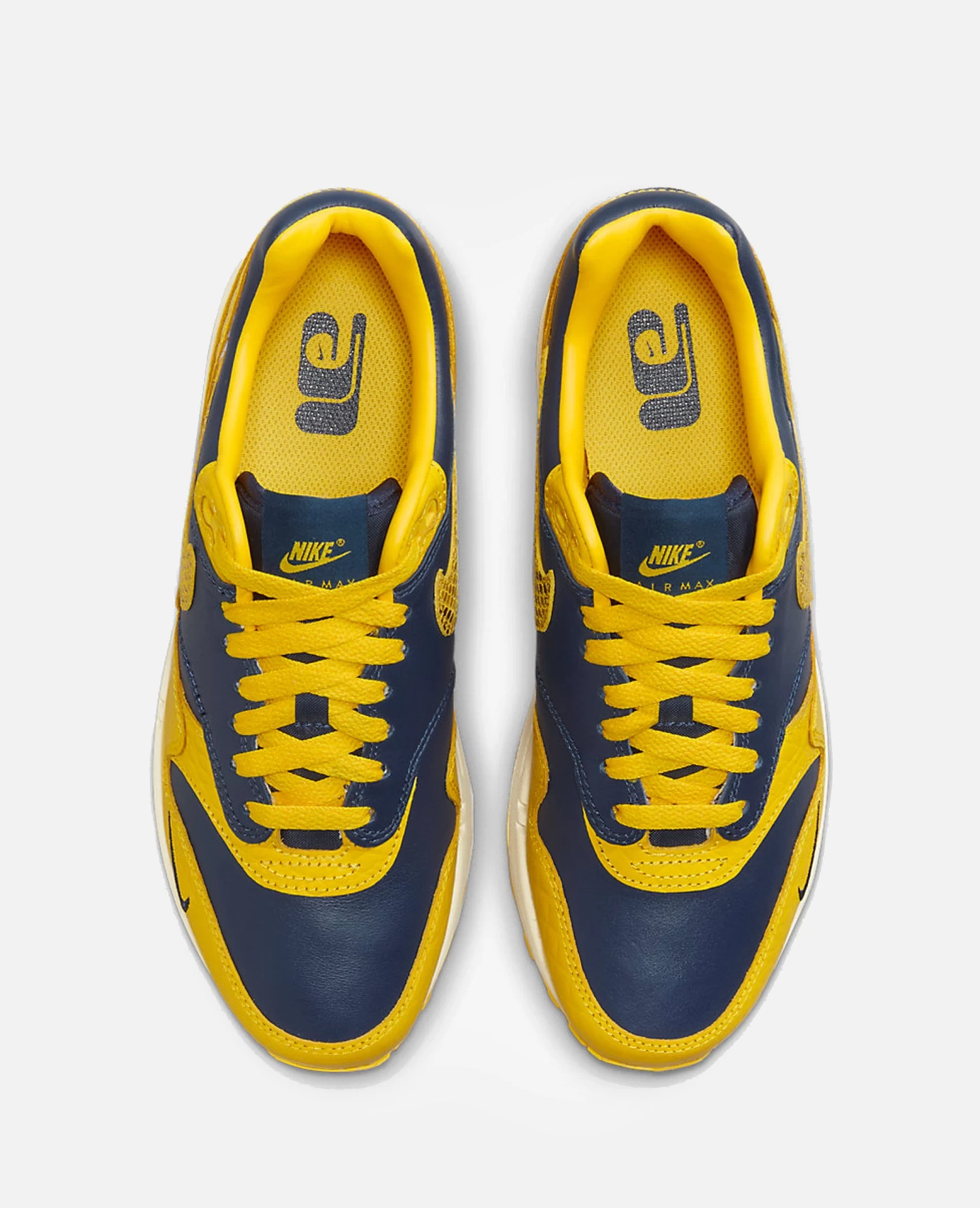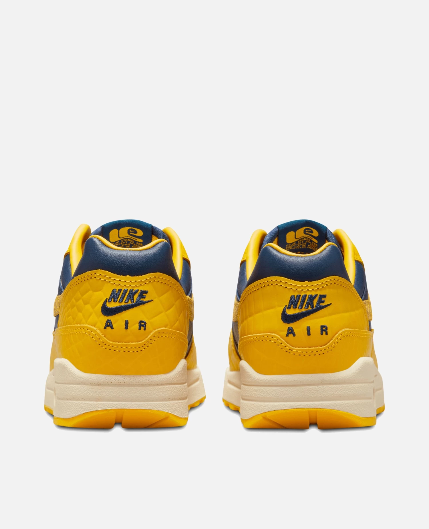 The Nike WMNS Air Max 1 PRM Varsity Maize shoe offers a sleek design with exceptional comfort. It combines a Midnight Navy upper with Varsity Maize accents and a foam midsole for lightweight cushioning. Natural motion ensures flexible support, ideal for long walks or everyday use.