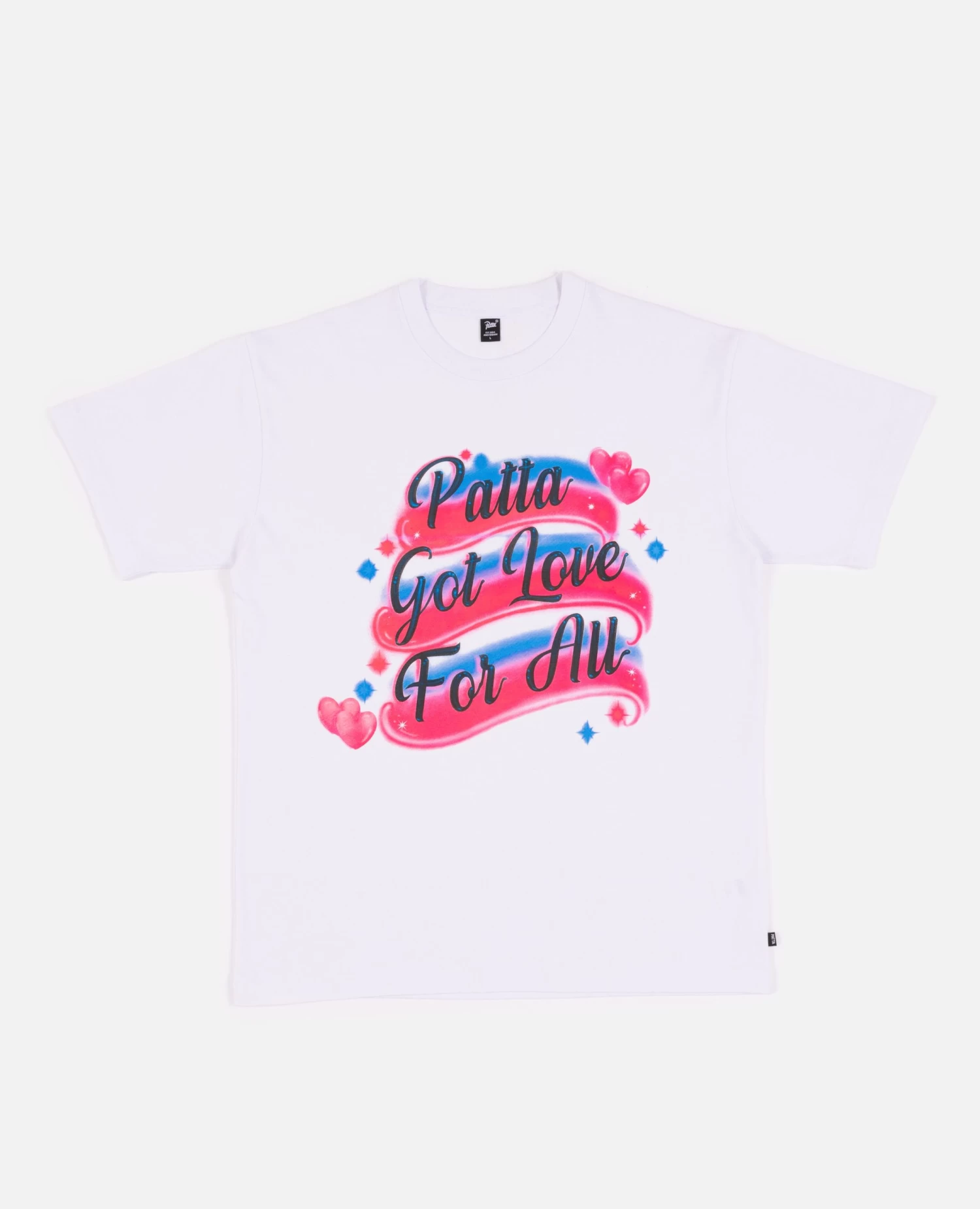 The Patta Airbrush T-Shirt is produced in 230gsm cotton. The front of the T-Shirt is adorned with a screen printed ‘Patta Got Love For All’ Airbrush artwork.