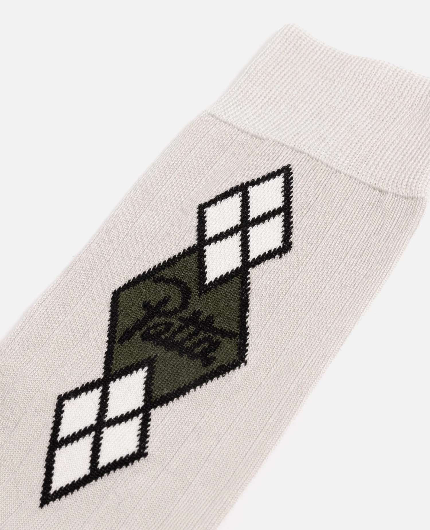 New this season are the Patta Argyle Dress Socks. Constructed from 80% Mercerized Cotton, 18% Polyamide and 2% Elastane blend. Adorned with a Patta Jacquard artwork. The Dress Socks are sold as a one pack.