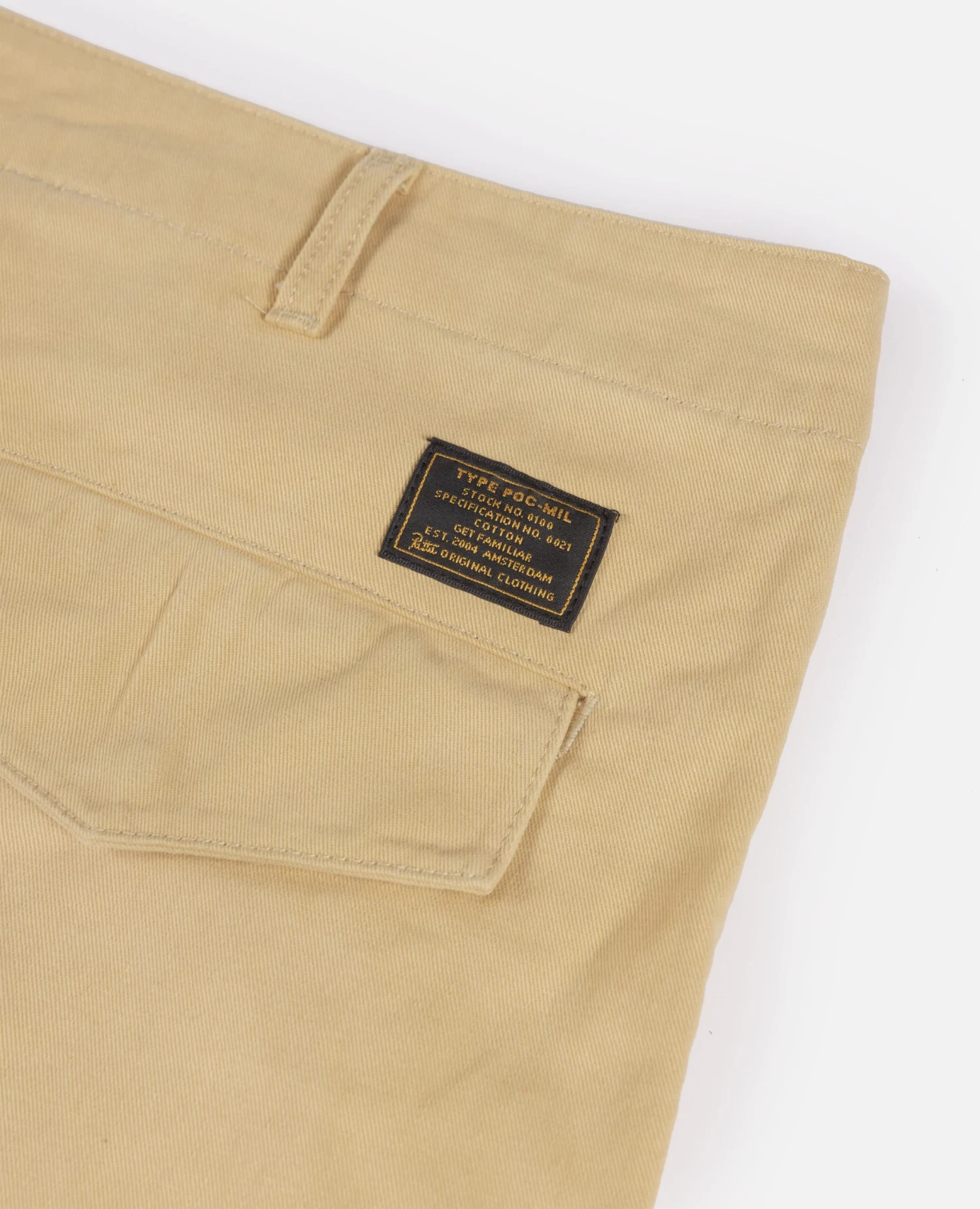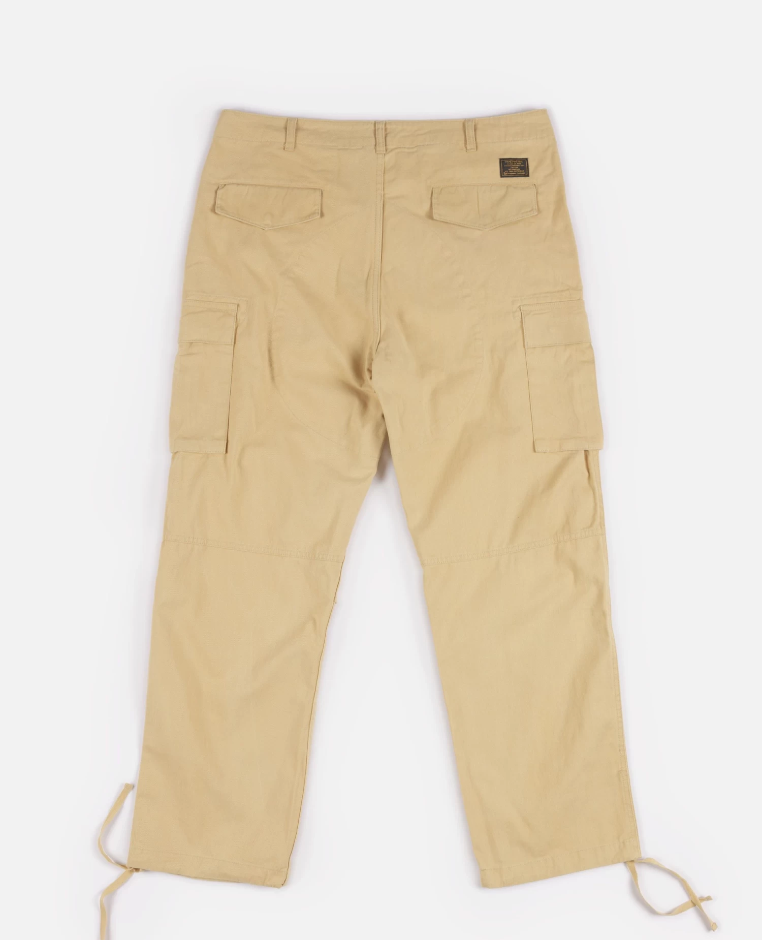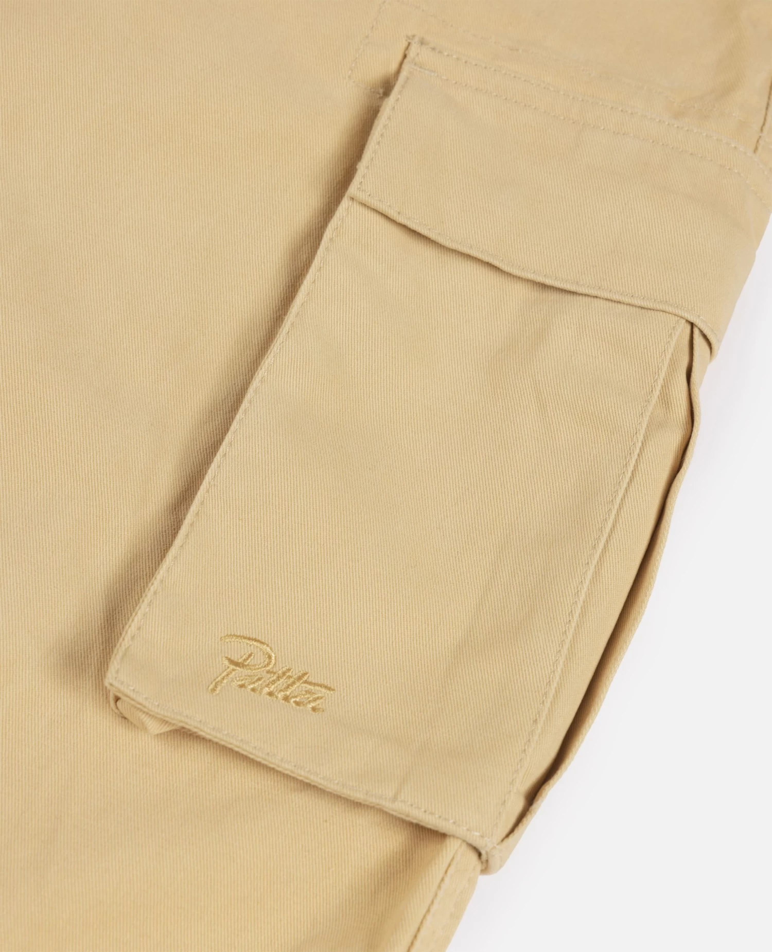 The Patta Basic Cargo Pants in Taos Taupe is constructed from 100% Cotton plain weave with a peached finish. Provided with self fabric waistband, belt loops, two side pockets, two cargo pockets and a back pocket. Branding is kept clean and simple with a Patta script logo embroidery on the left cargo pocket and a military style patch above the back pocket.
