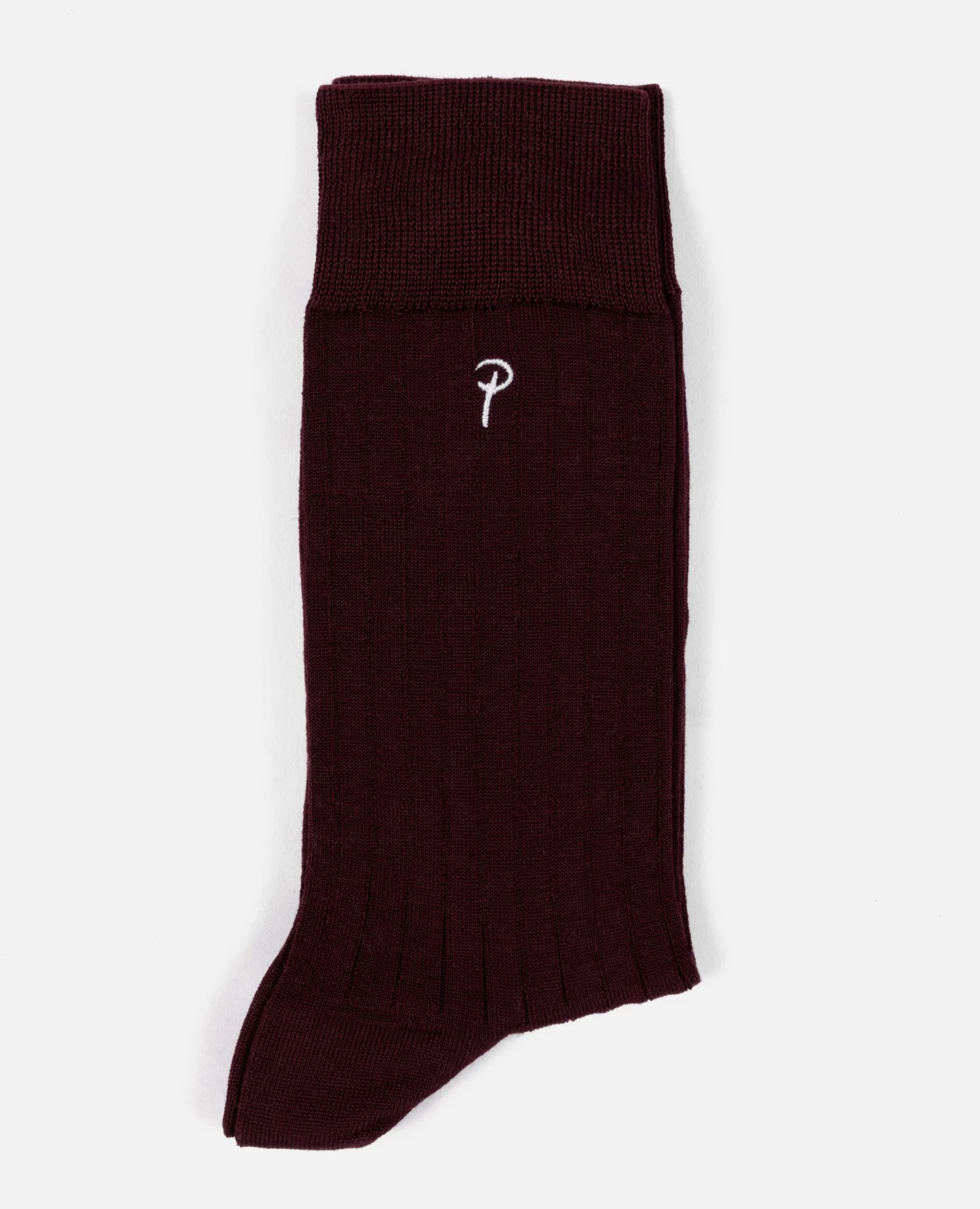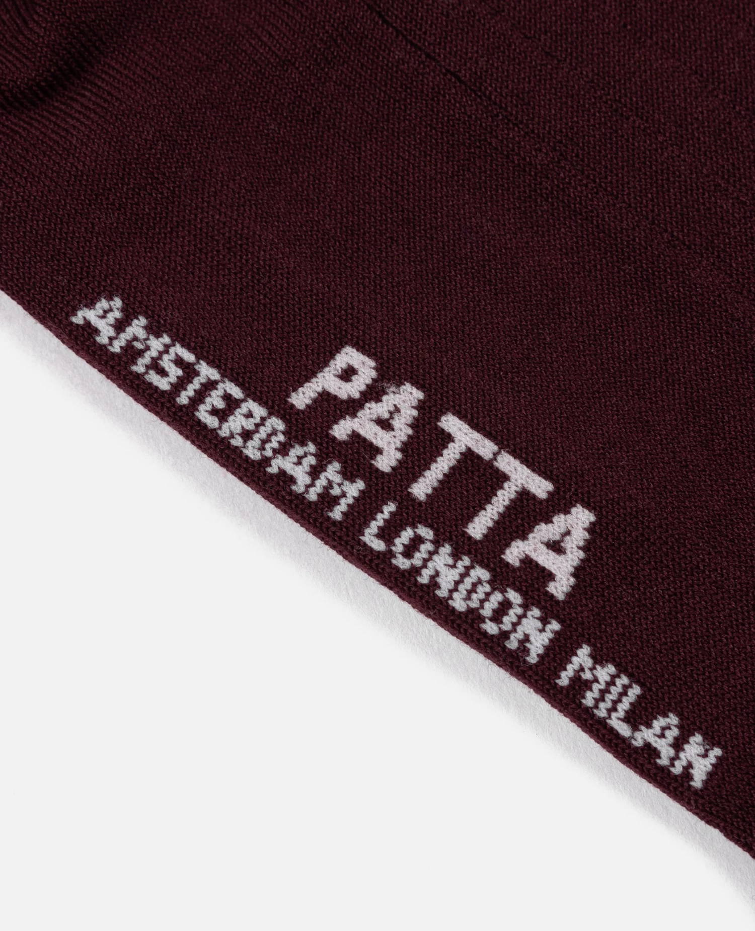 New this season are the Patta Basic Dress Socks in a Bordeaux colourway. Constructed from 100% mercerized cotton and adorned with a subtle Patta ‘P’ script logo at the top. The Dress Socks are sold in three sizes.