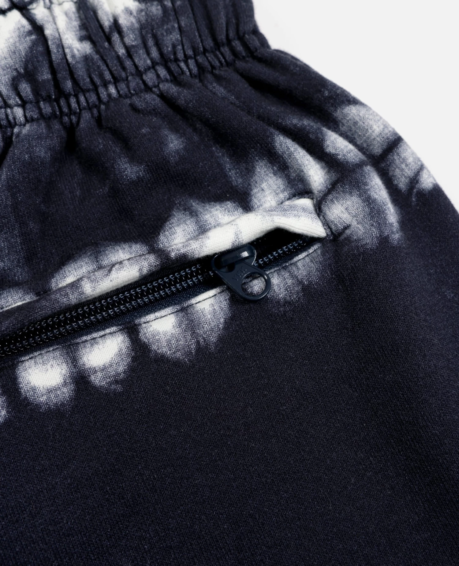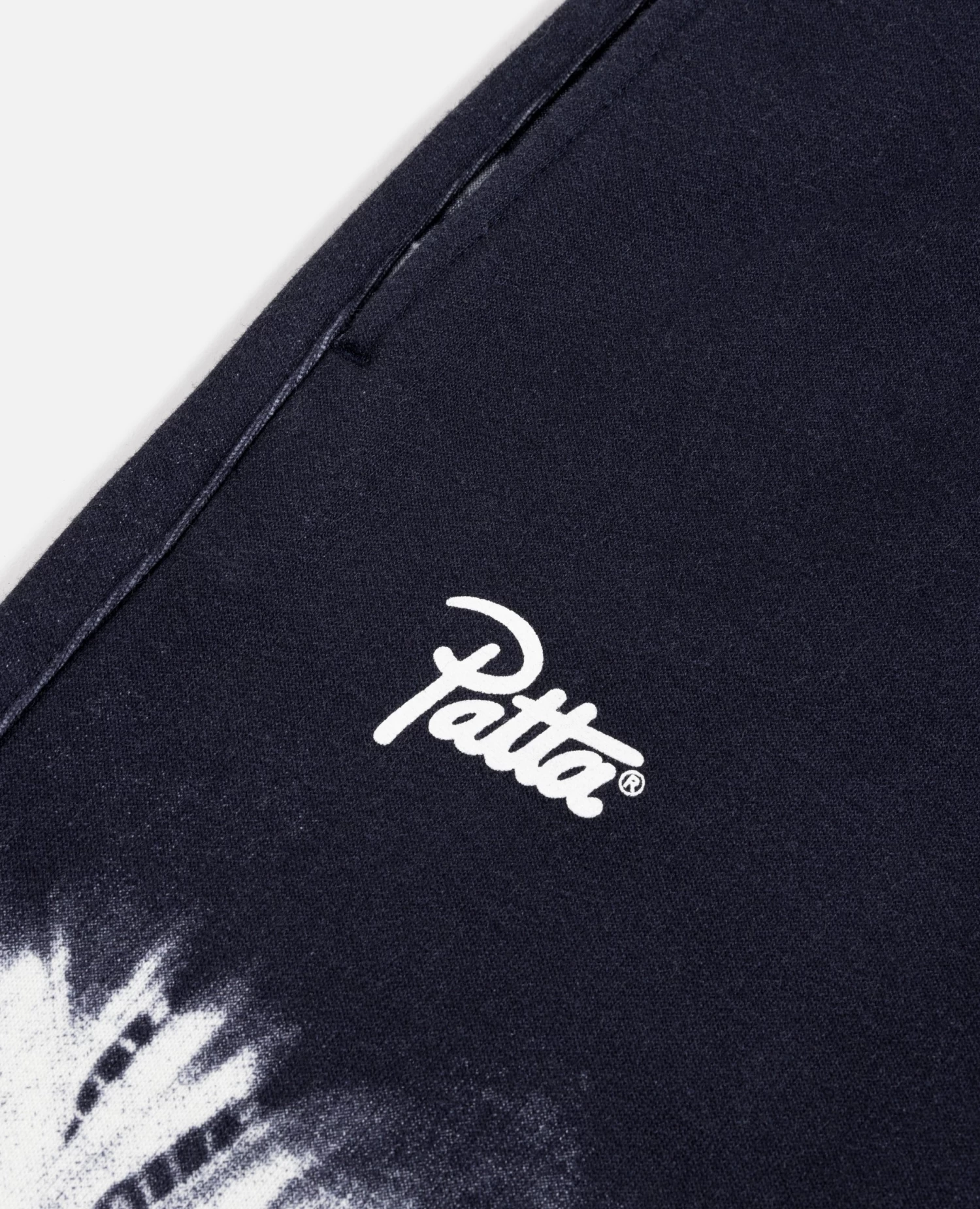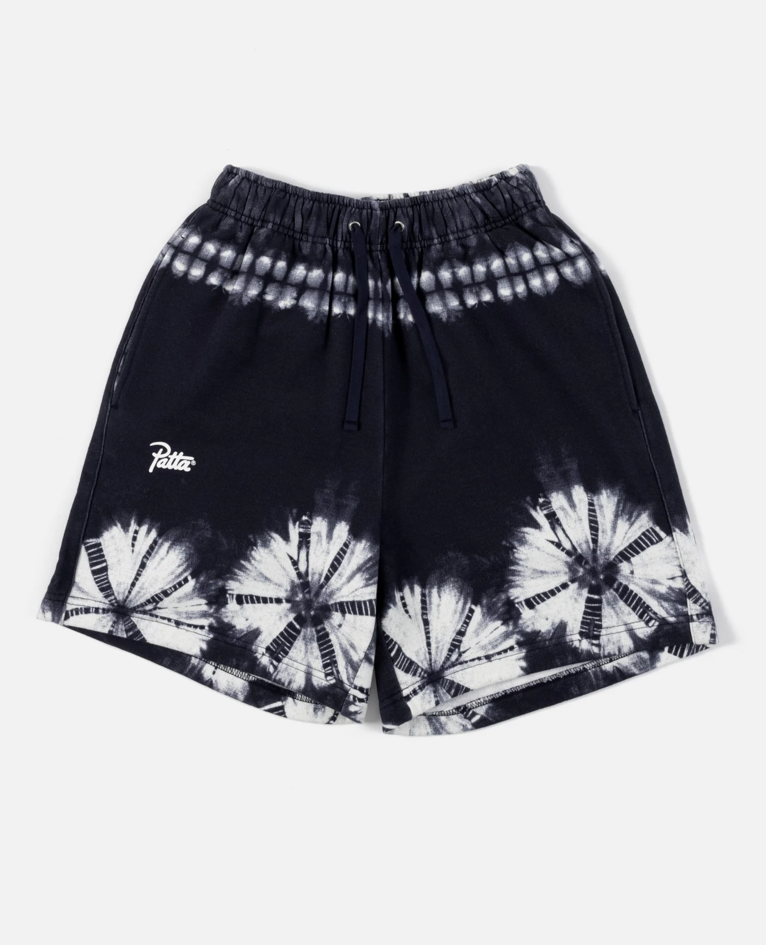 The Patta Basic Shibori Jogging Shorts are constructed in 450gsm cotton. The shorts feature an elastic waistband with drawstrings, two side pockets and a back pocket with zip closure. The shorts are adorned with an allover Shibori print and an embroidered Patta script logo at the right hand side hip.