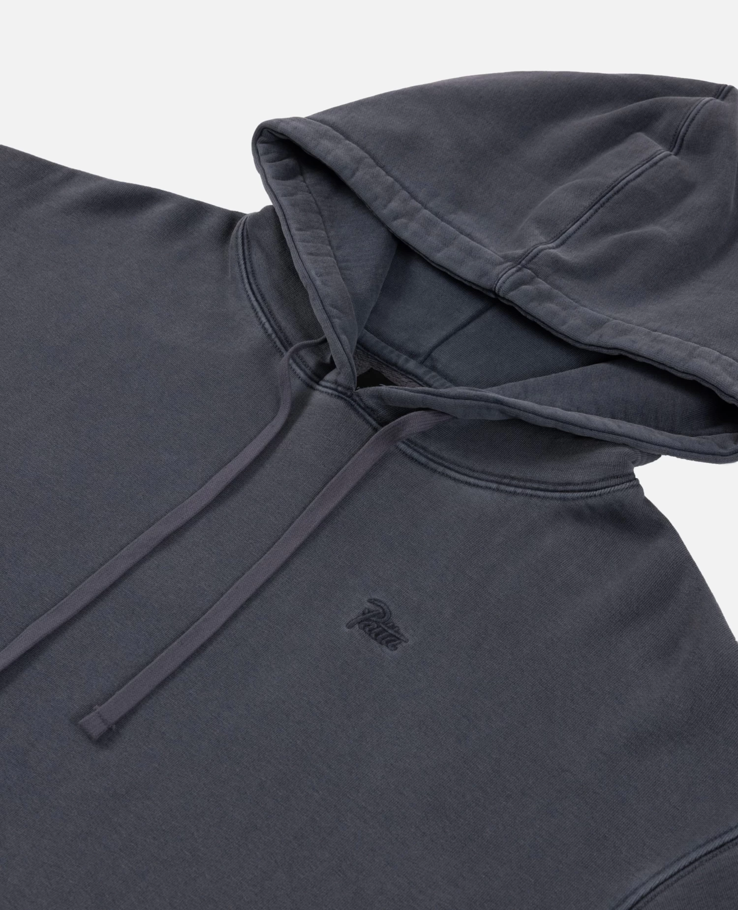 Coming in 410gsm soft brushed cotton, the Patta Basic Washed Boxy Hooded Sweater is pigment garment dyed. The hoodie features a drawstring hood with a kangaroo pouch pocket at the front with ribbed collar and sleeves. Branding is kept simple as always with a script logo embroidery on the left hand side of the chest.