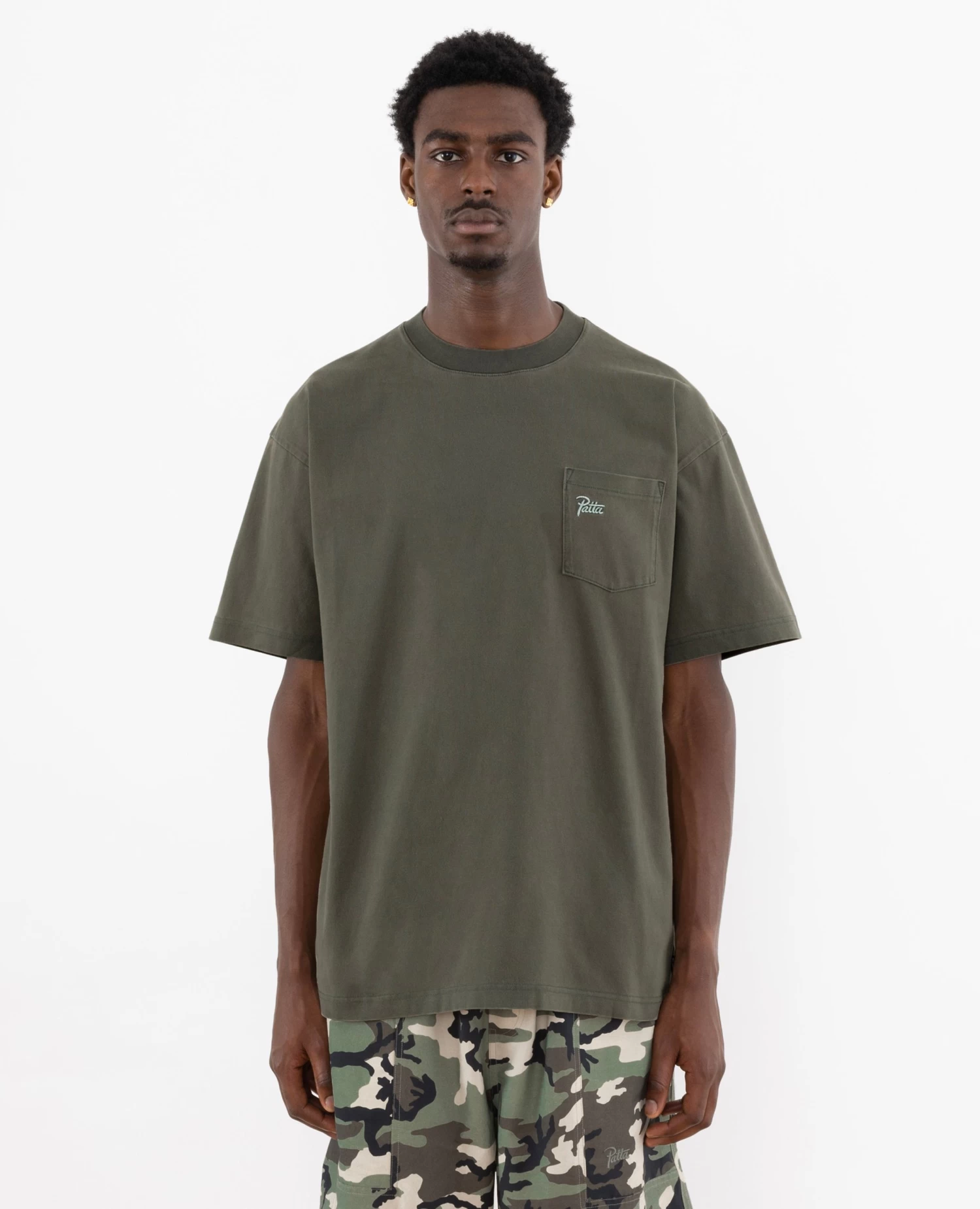 Coming in 220gsm 100% Cotton, the Patta Basic Washed Pocket T-Shirt is garment pigment dyed. Equipped with a pocket construction over the left hand side of the chest with an embroidered script logo that sits on the pocket for branding.