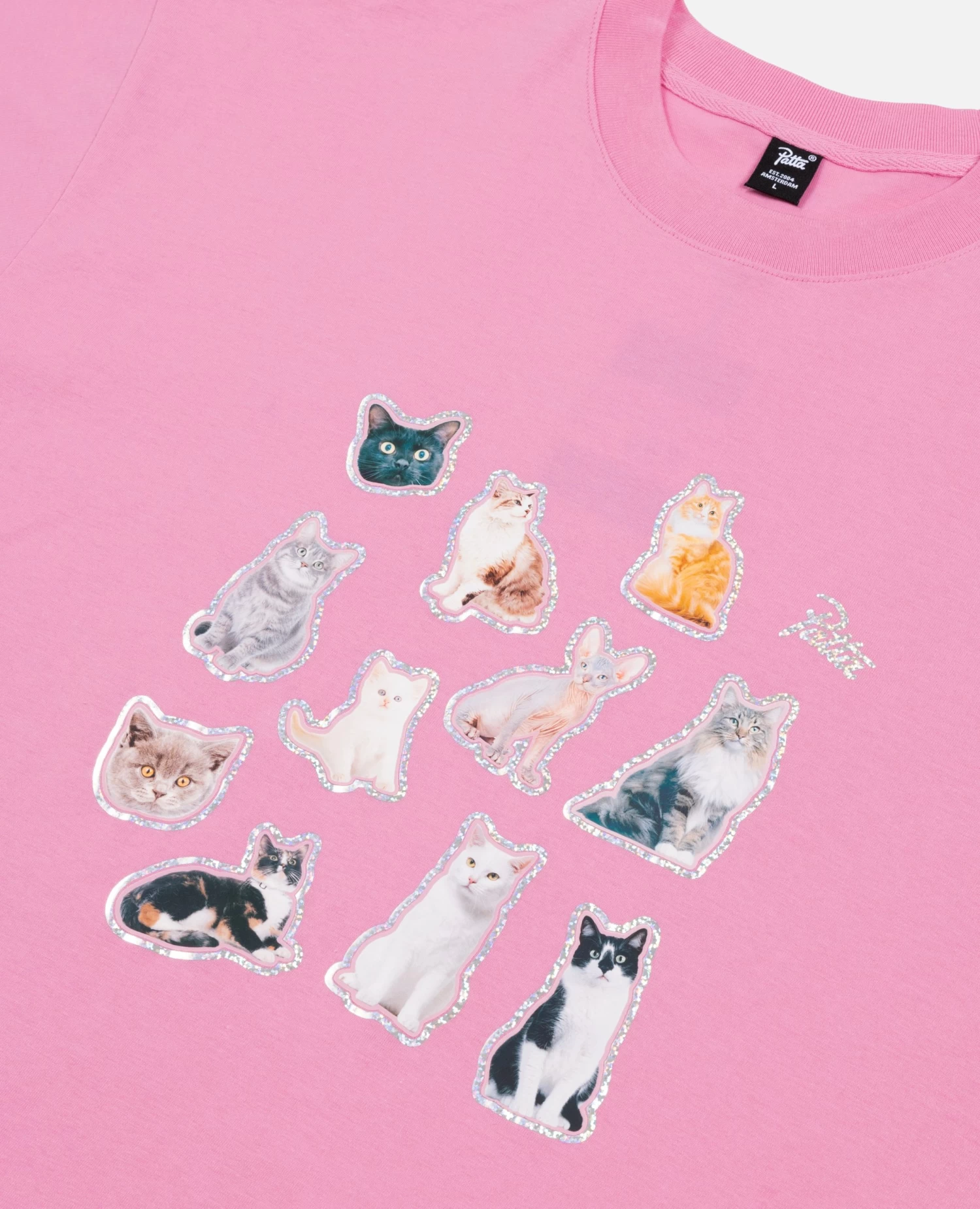 The Patta Cats T-Shirt is produced in 220gsm cotton. The T-Shirt is adorned with a screen printed Cats graphic with silver foil print effect on the front. Available in two iterations.