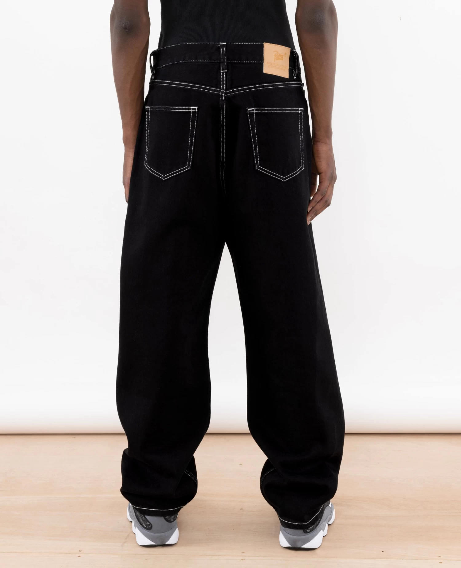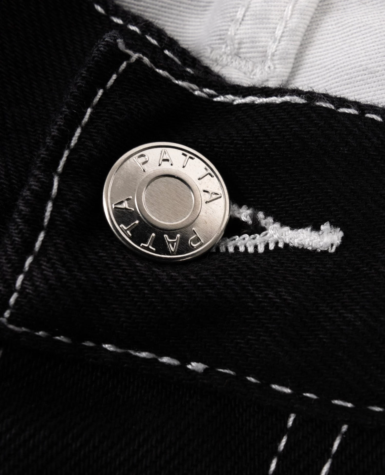 The Patta Contrast Stitch Loose Denim Jeans is a constructed in 100% Cotton Denim with a Rinse Wash. The 15 oz mid-heavyweight Jeans have a loose fit and feature two side pockets, two back pockets, a buttoned fly, branded buttons and branded rivets . Adorned with contrasting stitches, a Patta flag label on the coin pocket and a branded back patch made from pineapple leather.