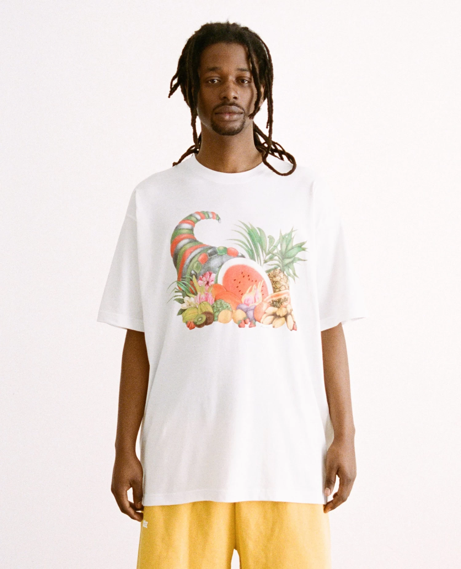 The Patta Cornucopia T-Shirt is produced in 180gsm cotton. Featuring a hand-illustrated Cornucopia artwork at the chest and a Patta script logo on the upper neck.