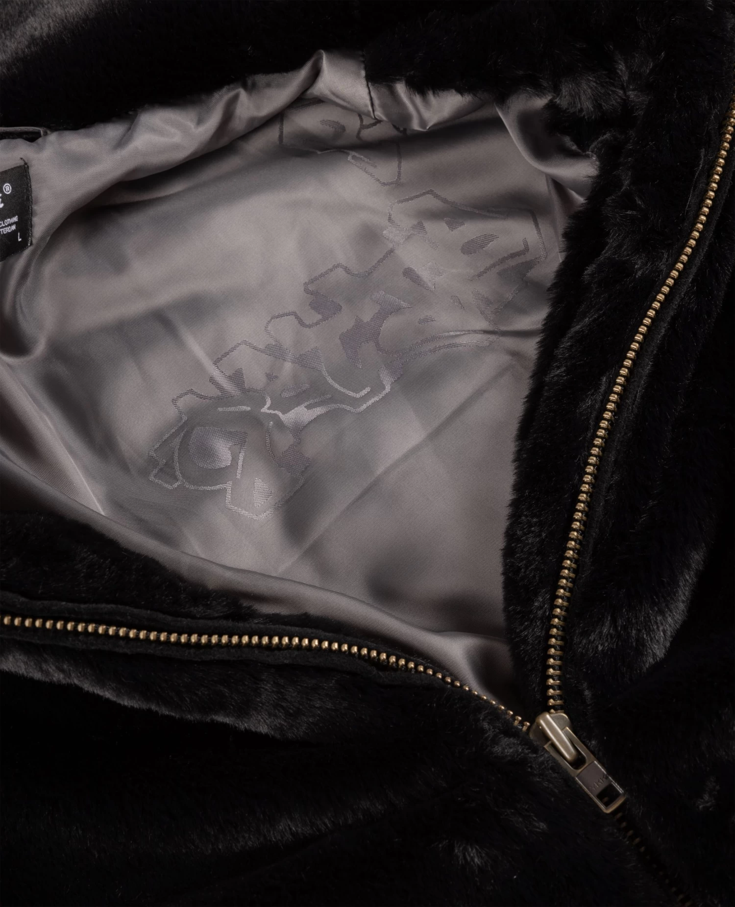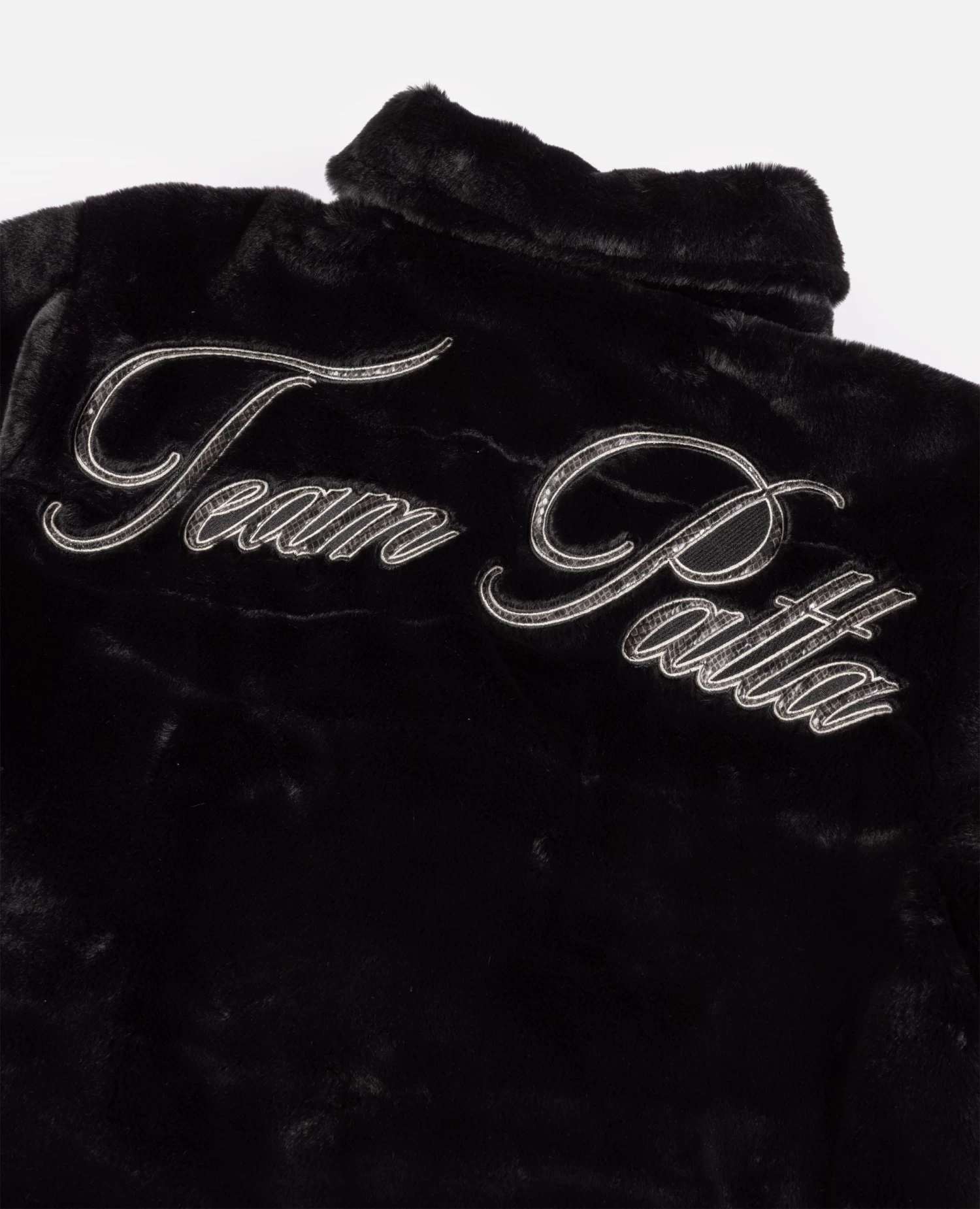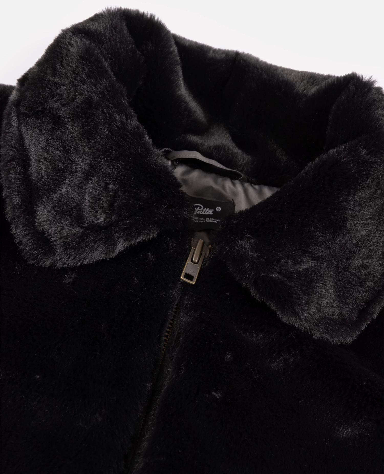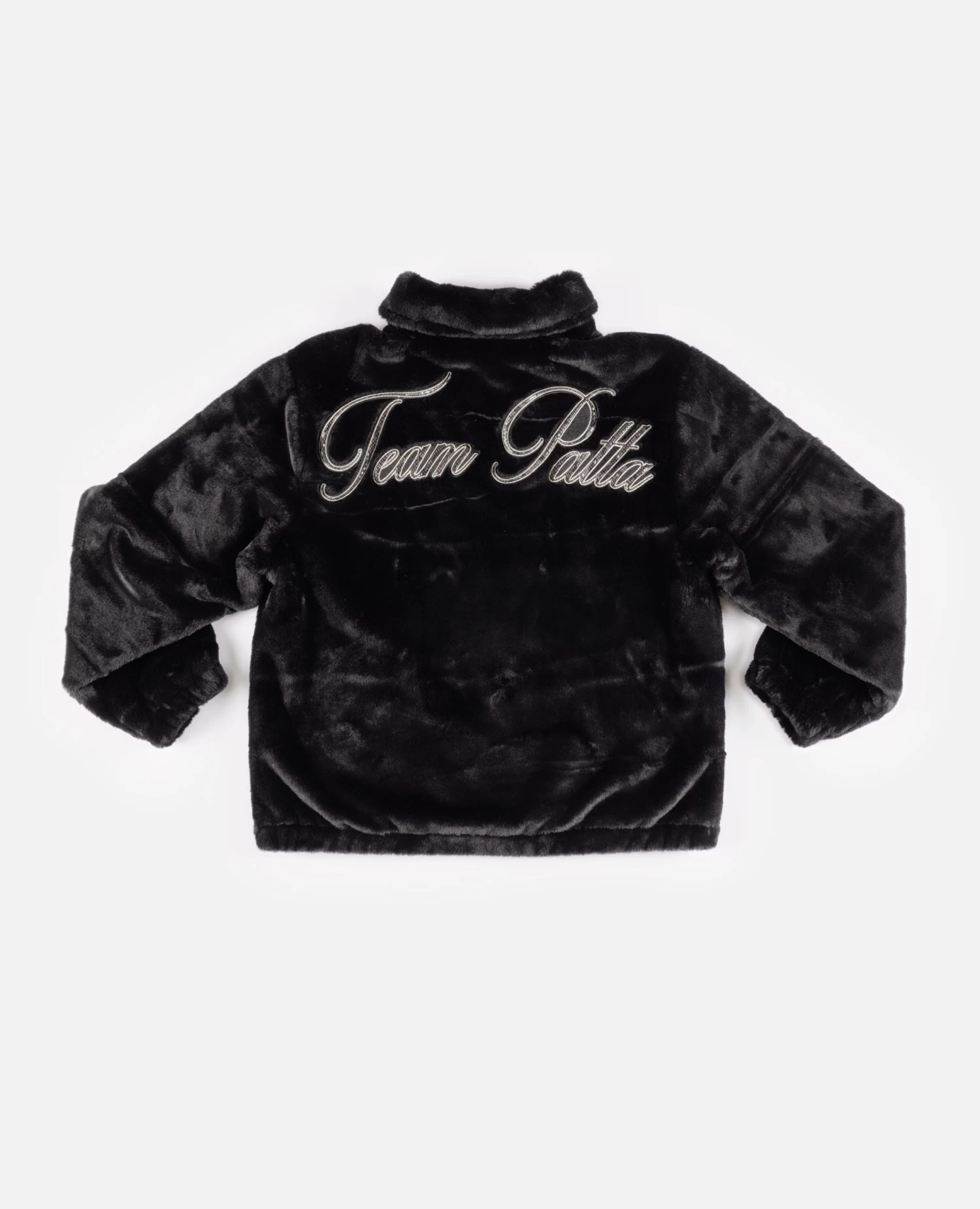 The Patta Faux Fur Jacket is produced in 100% Polyester Faux Fur and features a 100% Satin Jacquard lining adorned with Patta Graffiti artwork. The Jacket is Provided with two jet pockets, an interior pocket, two way main zipper with faux leather snake puller, elastic cuffs and bottom hem. Enriched with Faux Leather Snake ‘Team Patta’ applique on the back.