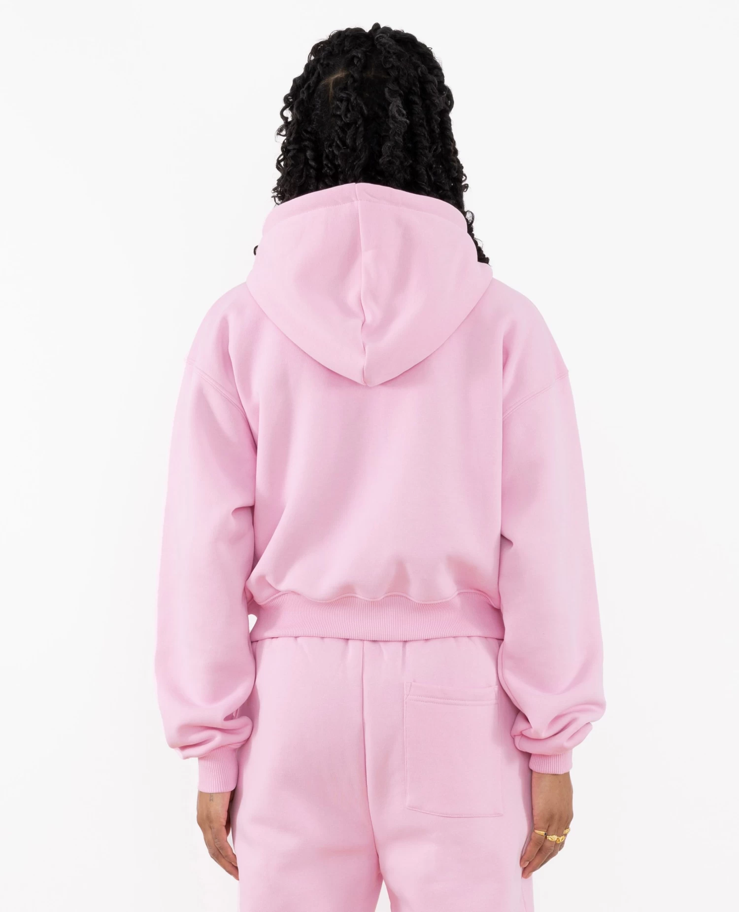 Constructed in a 400gsm brush back cotton, the Patta Femme Zip up Hoodie comes with kangaroo pocket, a hood with drawstrings and ribbed cuffs and hems. Silk screen printed Patta script logo on the left chest. The hooded sweater has a boxy shape and is cropped.