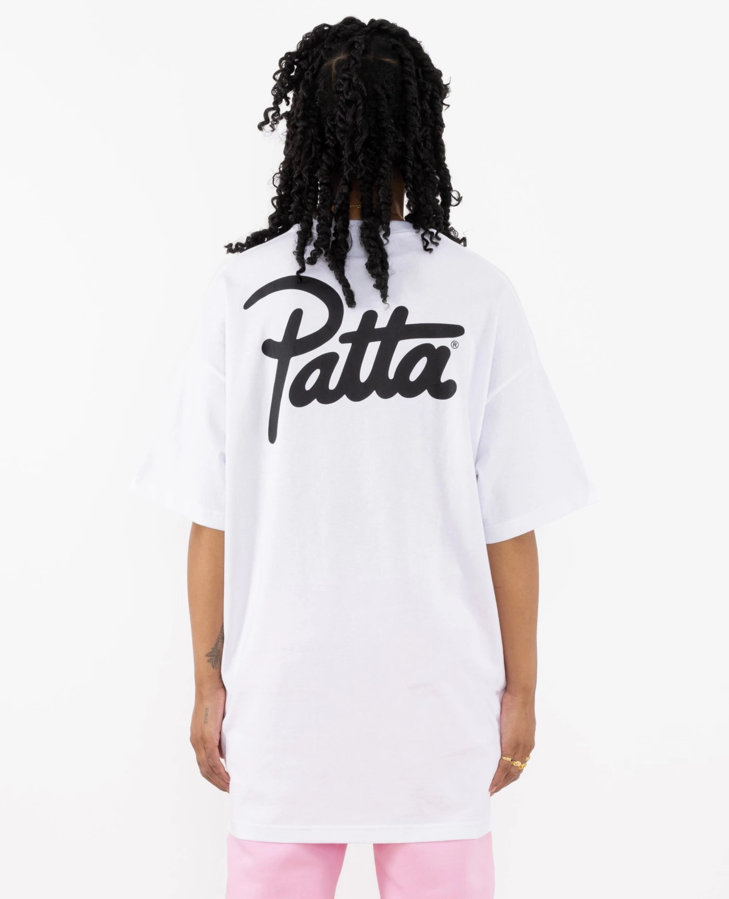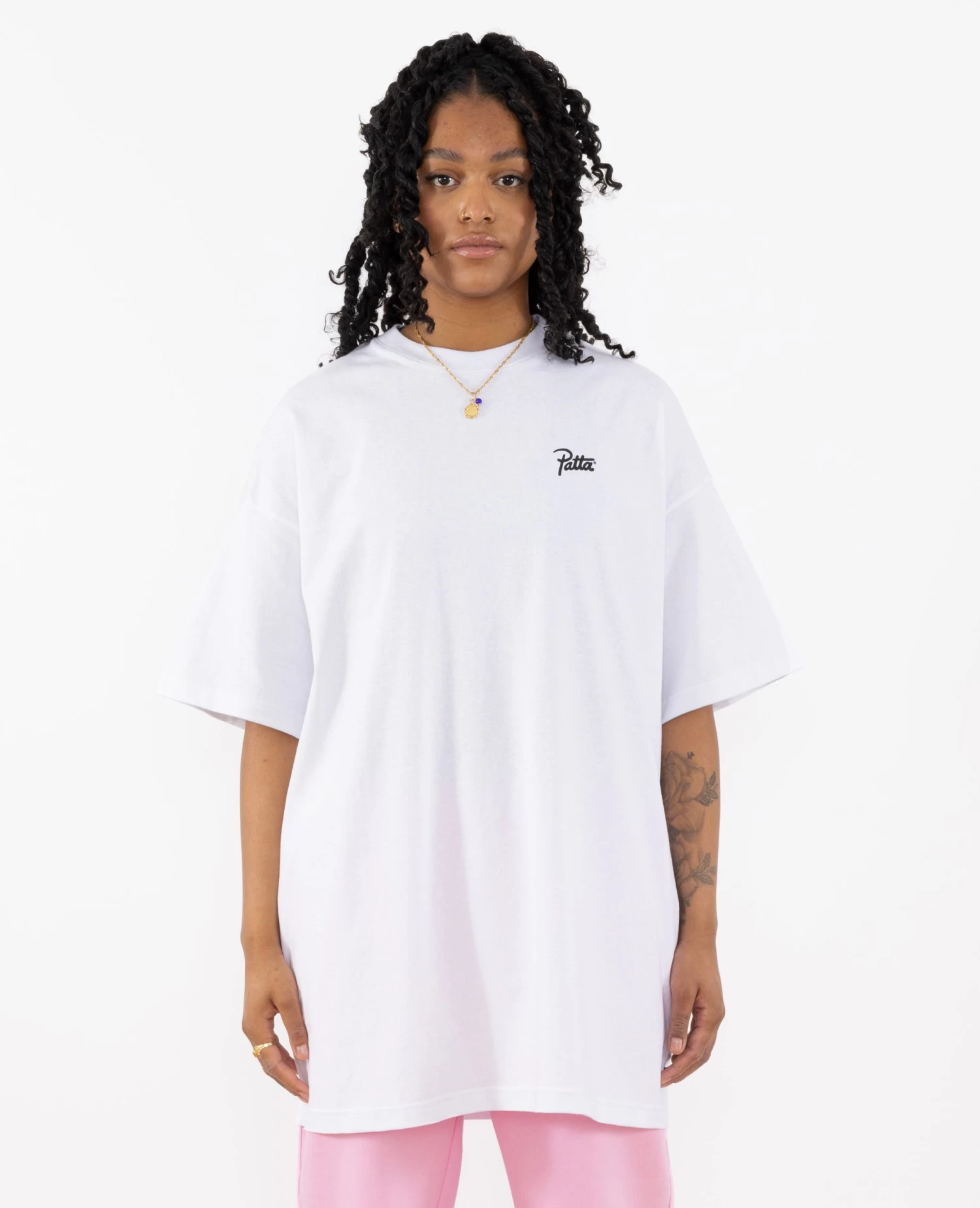 The Patta Femme oversized T-shirt dress comes in 200gsm cotton with a small silk screen printed Patta script logo adorning the front and a large silk screen printed Patta script logo on the back of the tee.