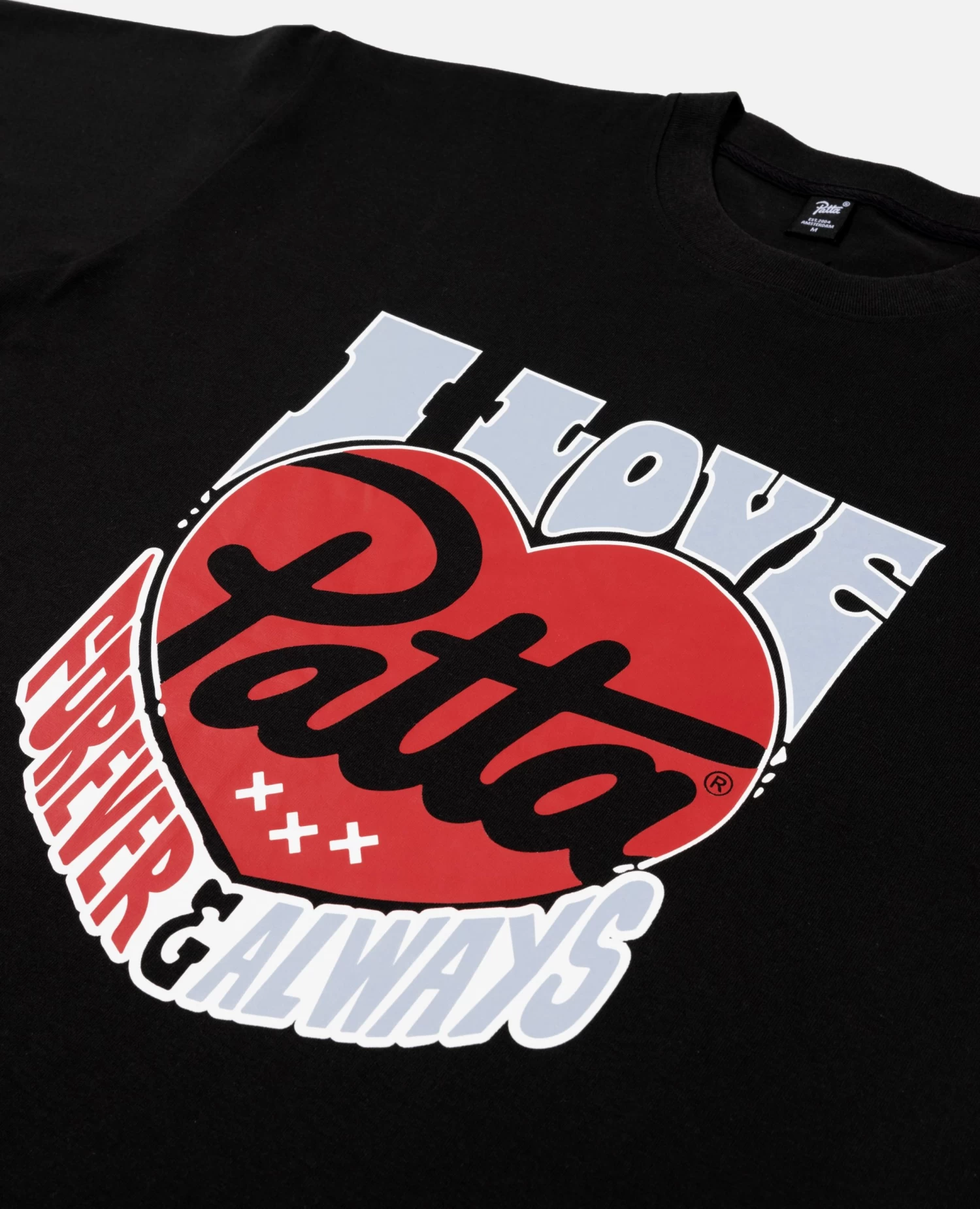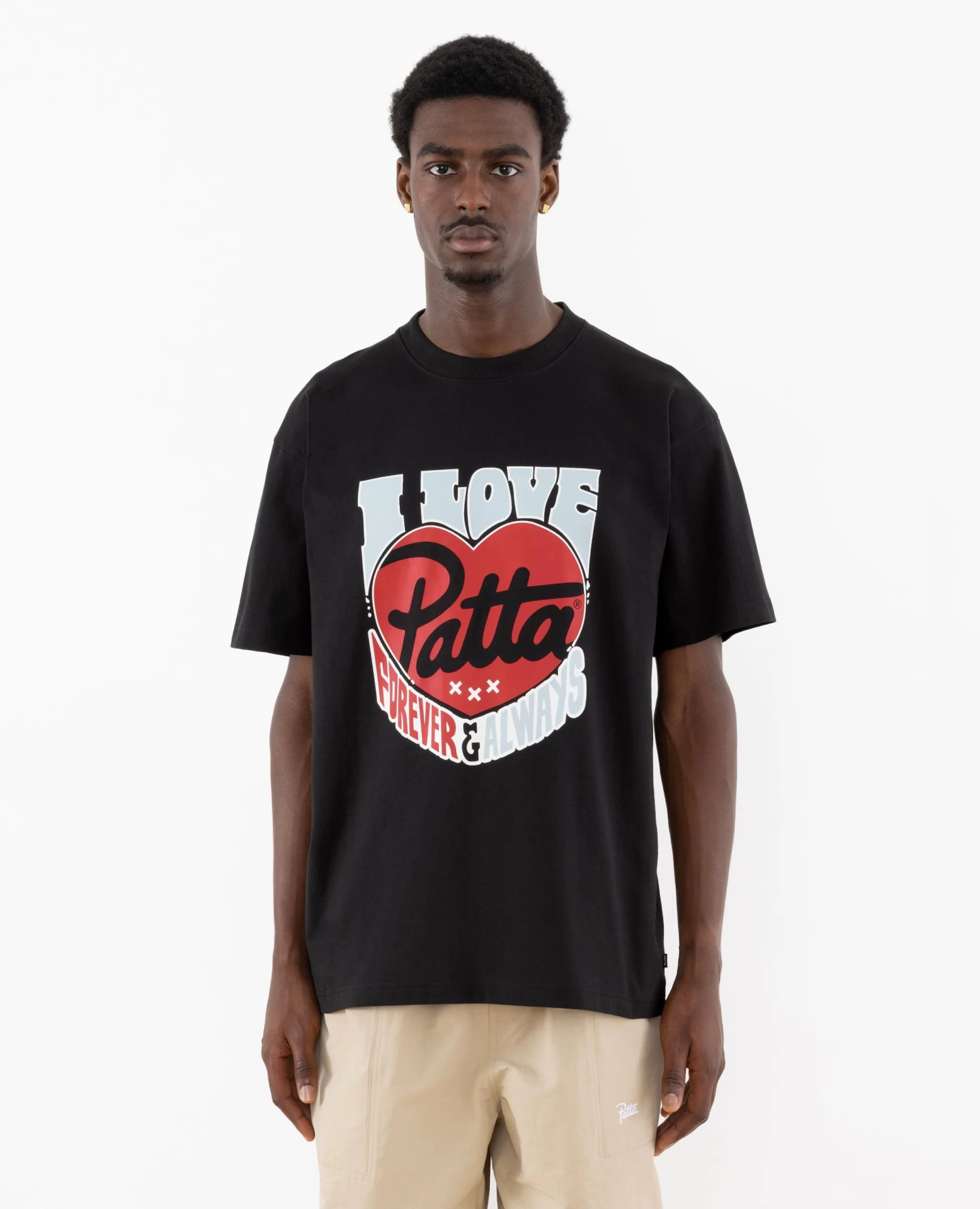 The Patta Forever and Always T-Shirt is produced in 220gsm cotton. The T-Shirt is adorned with a Forever and Always screenprinted graphic on the front. Available in two iterations.