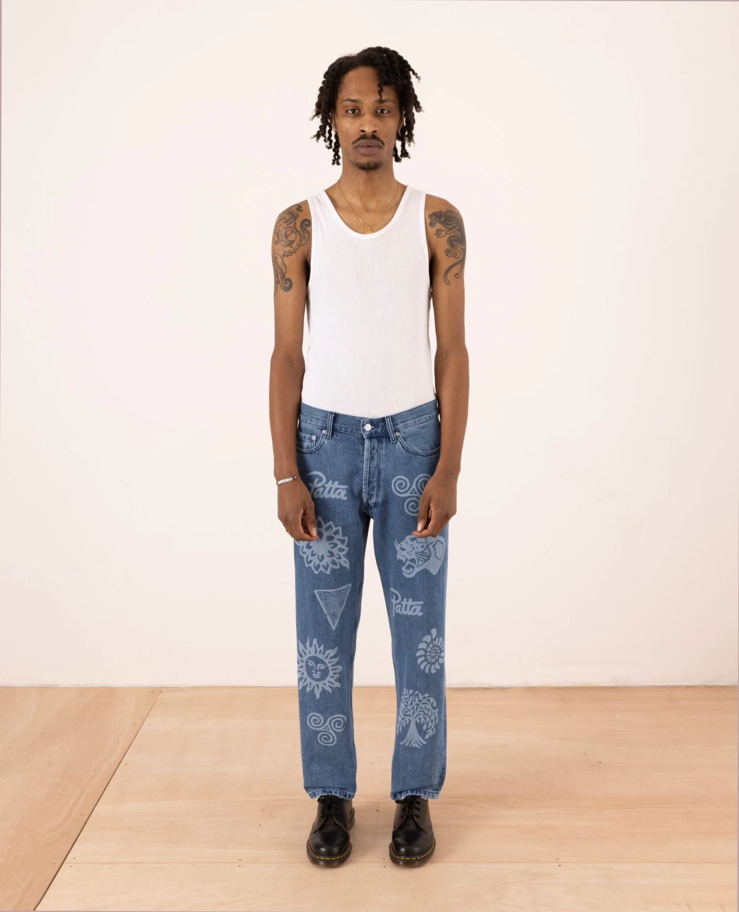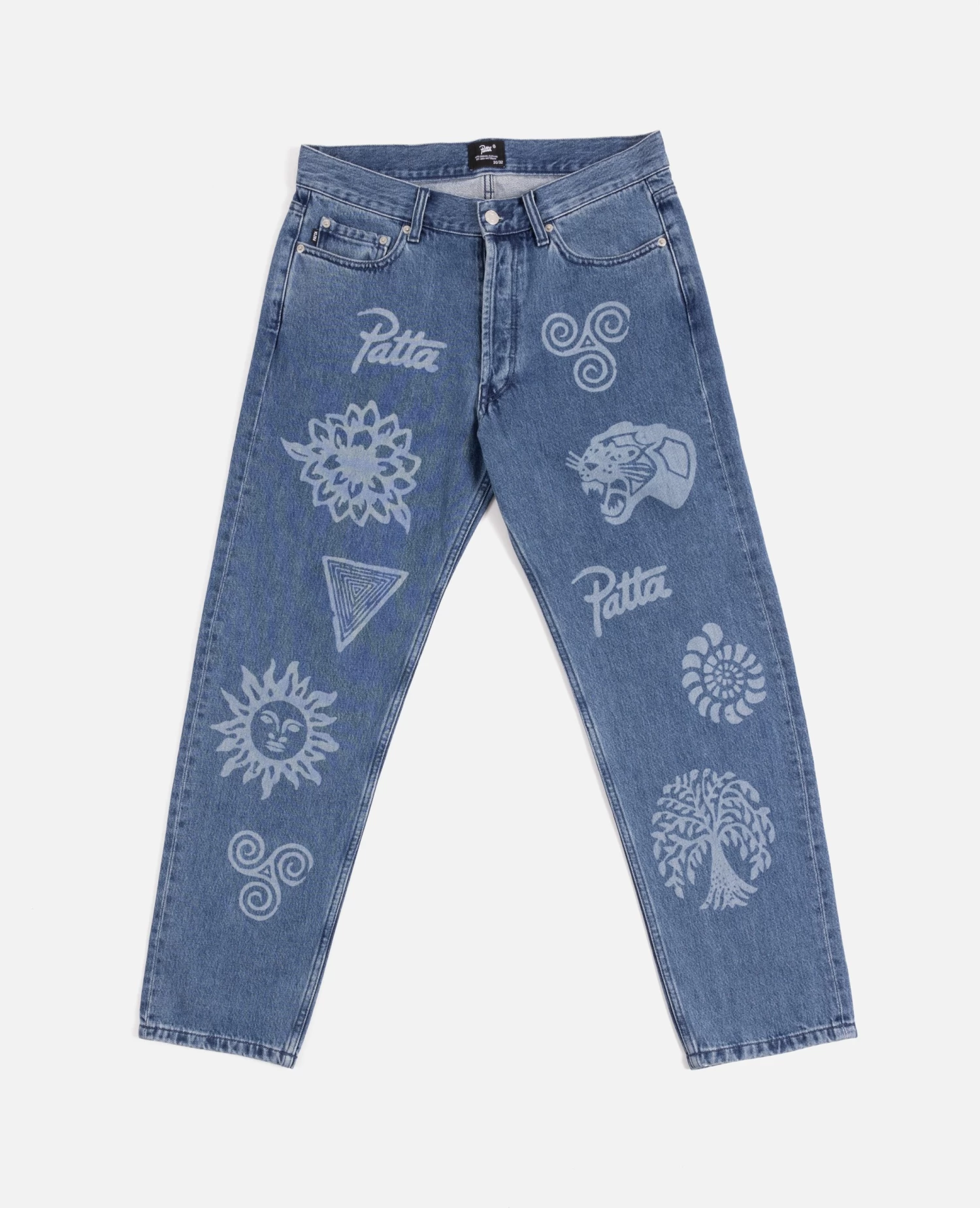 The Patta Hope Love Peace Denim Pants is constructed in 100% Cotton Denim and has a straight summery fit. The denim pants are enriched with laser printed symbols and a Pan African Patta script logo embroidery at the back pocket.