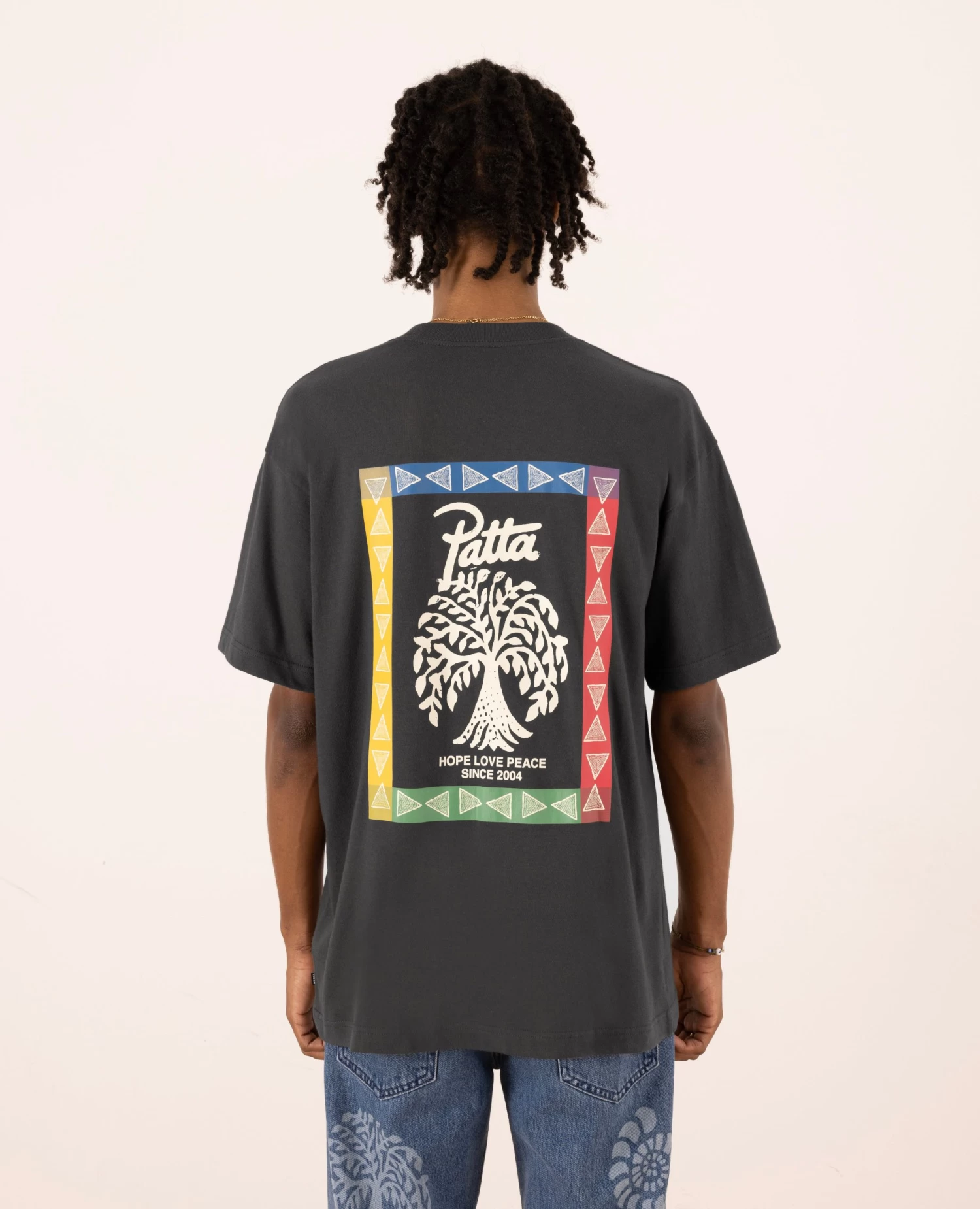 The Patta Hope Love Peace T-Shirt is produced in 180gsm cotton. It has a premium silk screen Patta script logo on the left hand side of the chest. The back features a screen printed Hope Love Peace artwork. Available in two iterations.