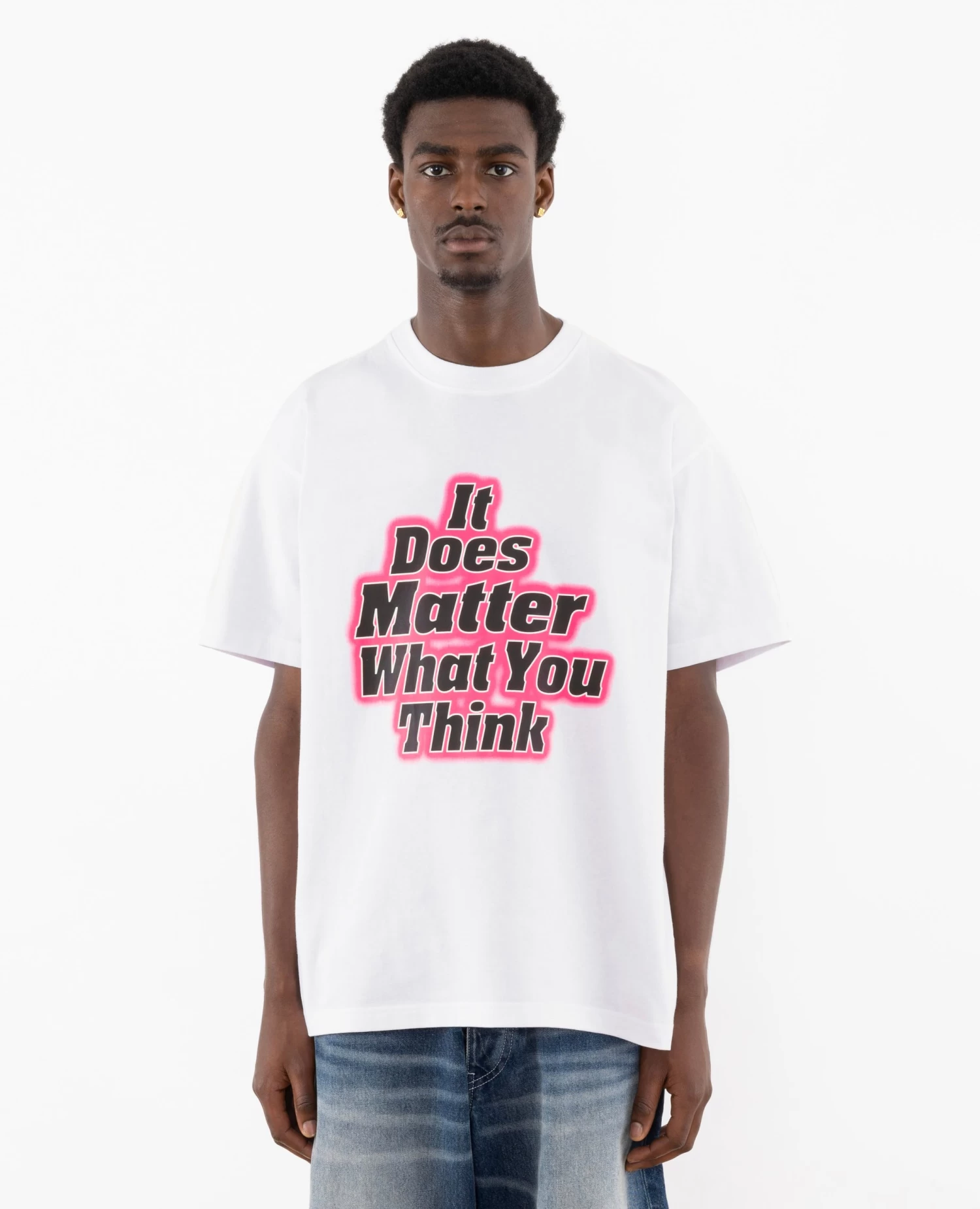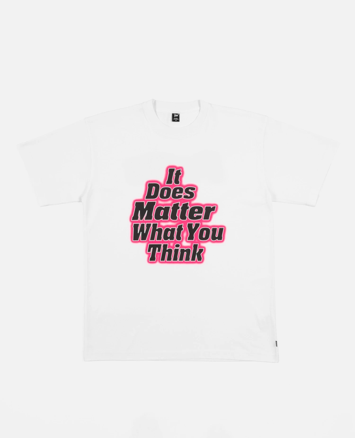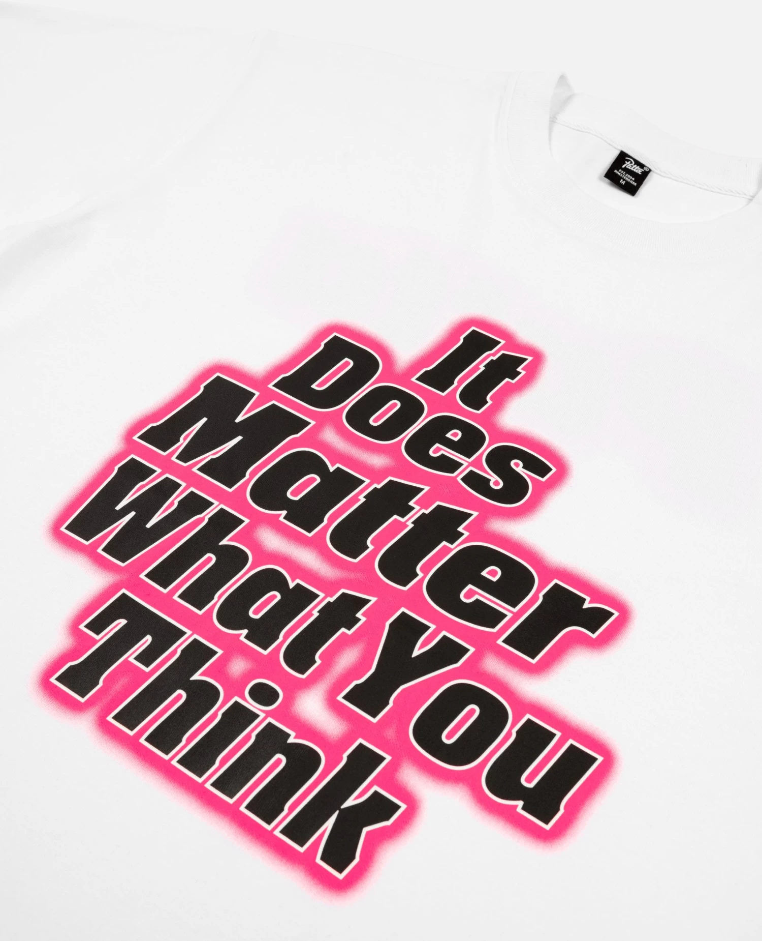 The Patta It Does Matter What You Think T-Shirt is produced in 220gsm cotton. It features a large screenprinted graphic on the front and screenrinted Patta branding on the back. Available in two iterations.