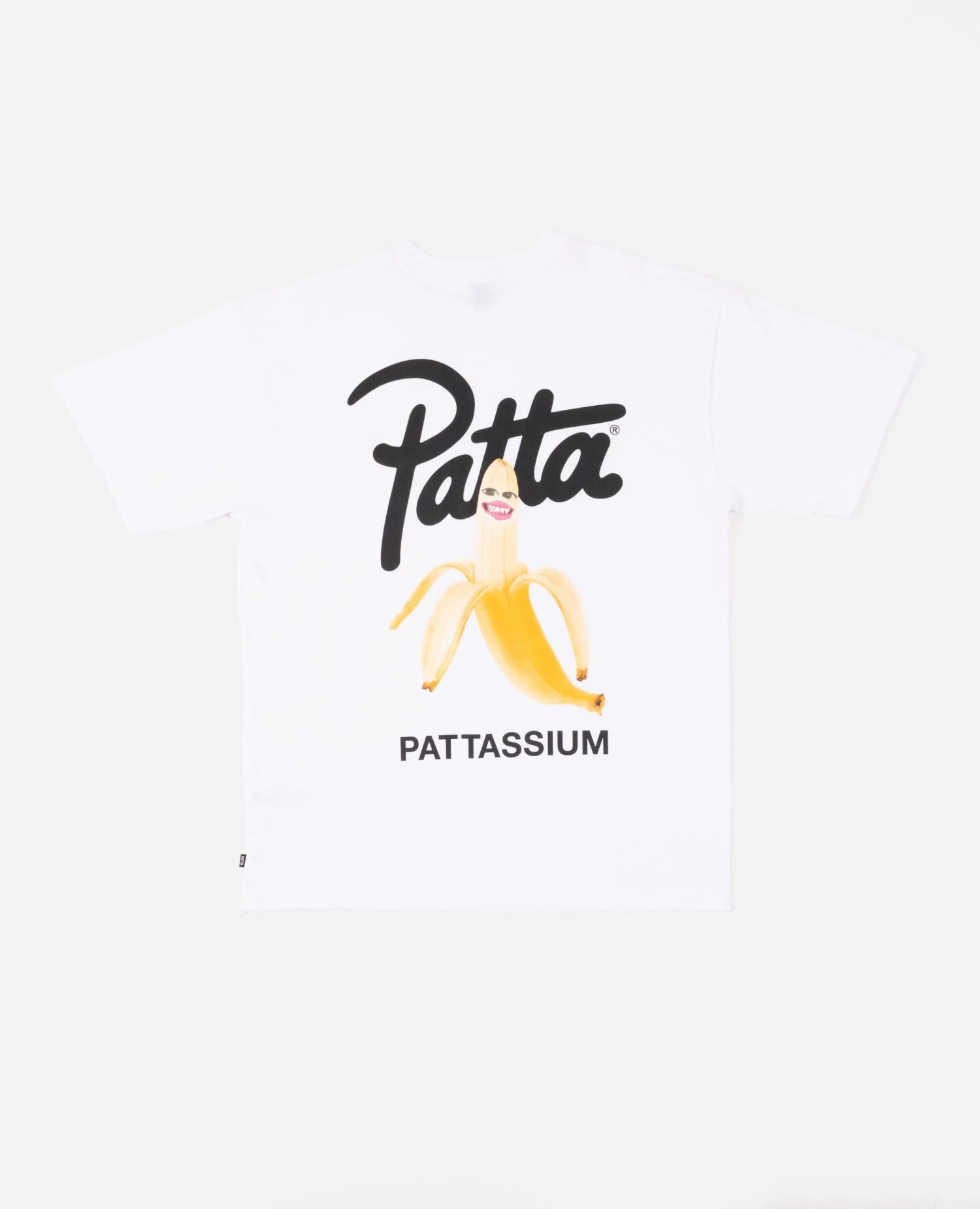 The Patta Pattassium T-Shirt is produced in 180gsm cotton. It features a screen printed Patta script logo at the left hand side of the chest. The back is adorned with a screen printed Pattassium artwork.