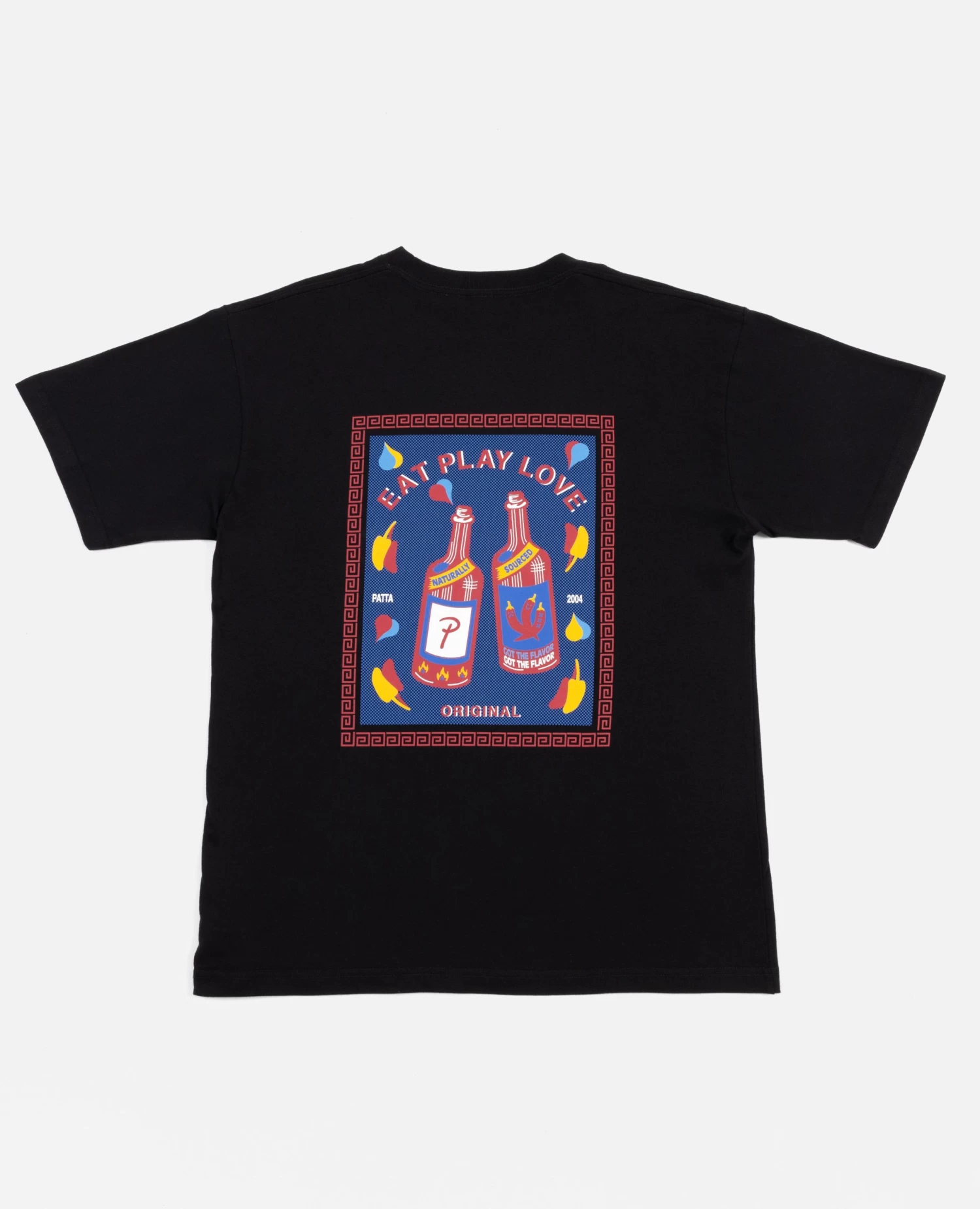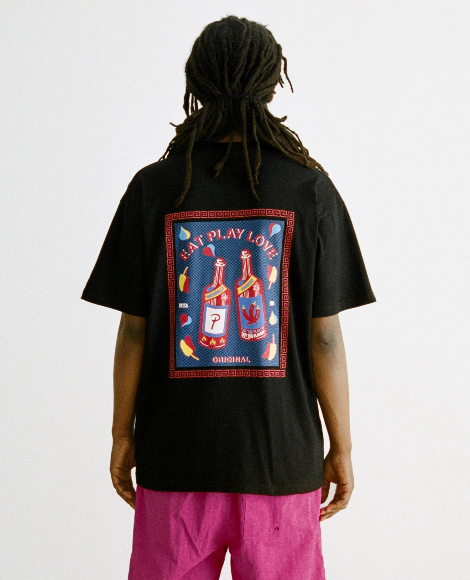 The Patta Salsa T-Shirt is produced in 180gsm cotton. It features a screenprinted Patta script logo at the left hand side of the chest. The back is adorned with a screenprinted Salsa artwork. Available in three iterations.