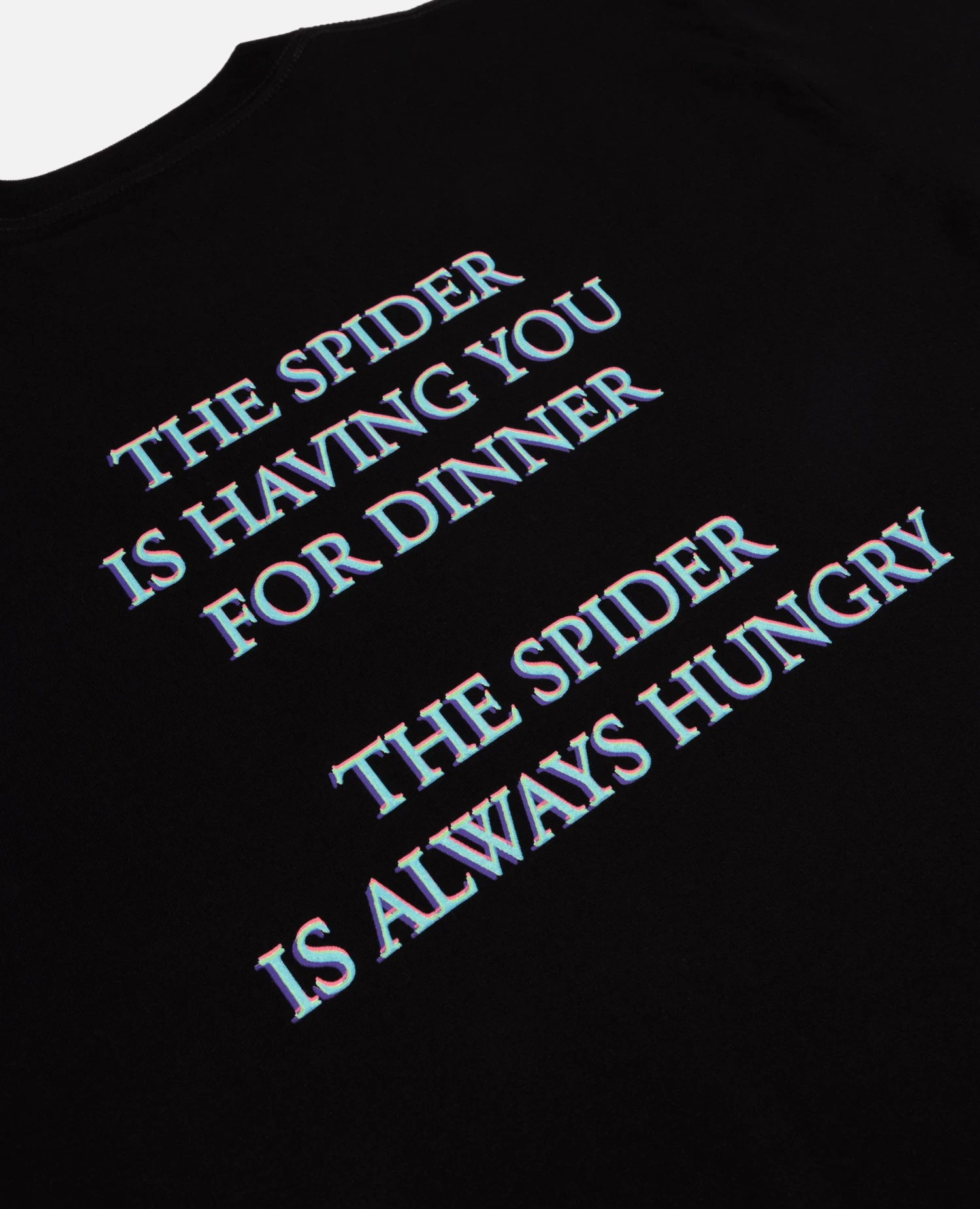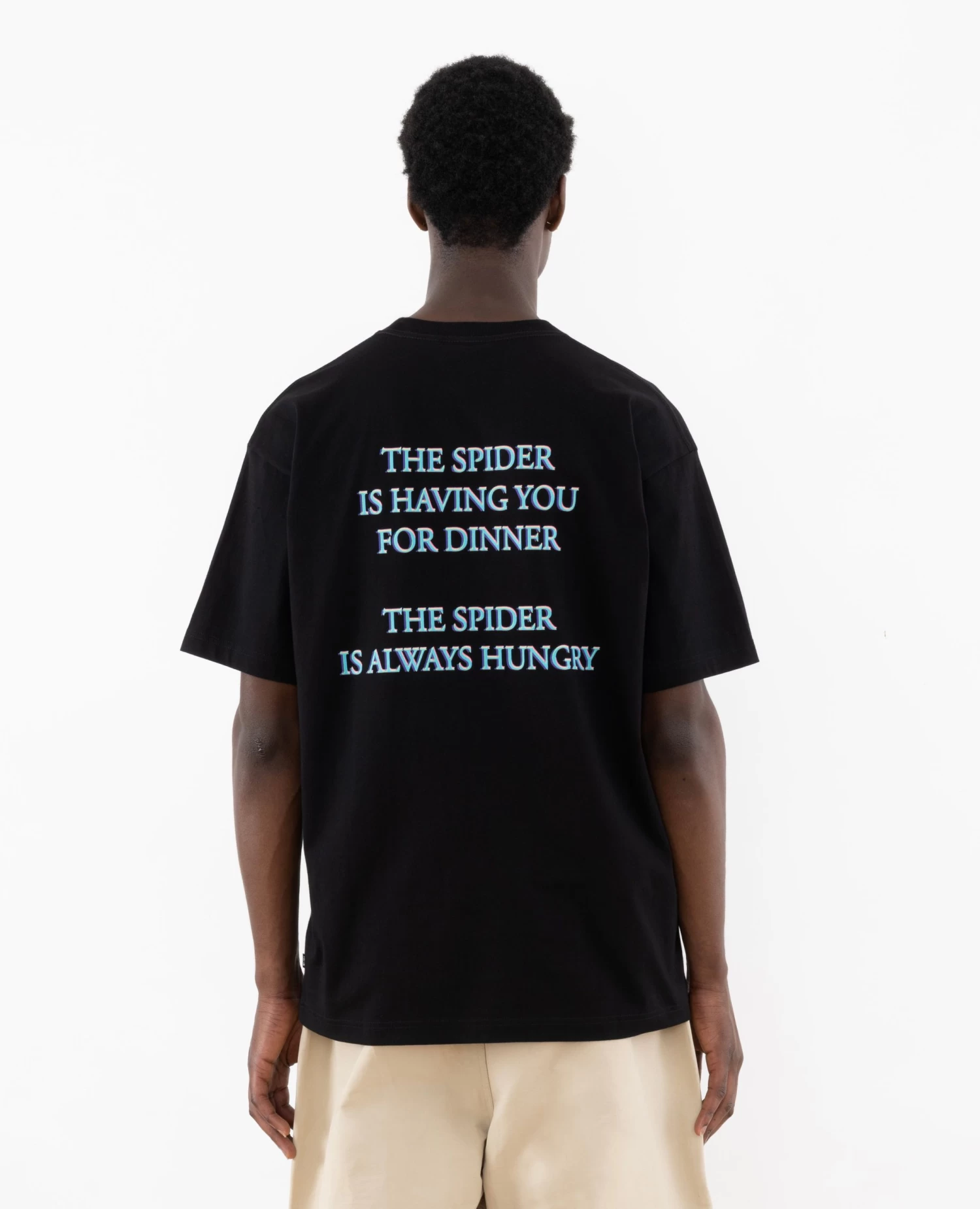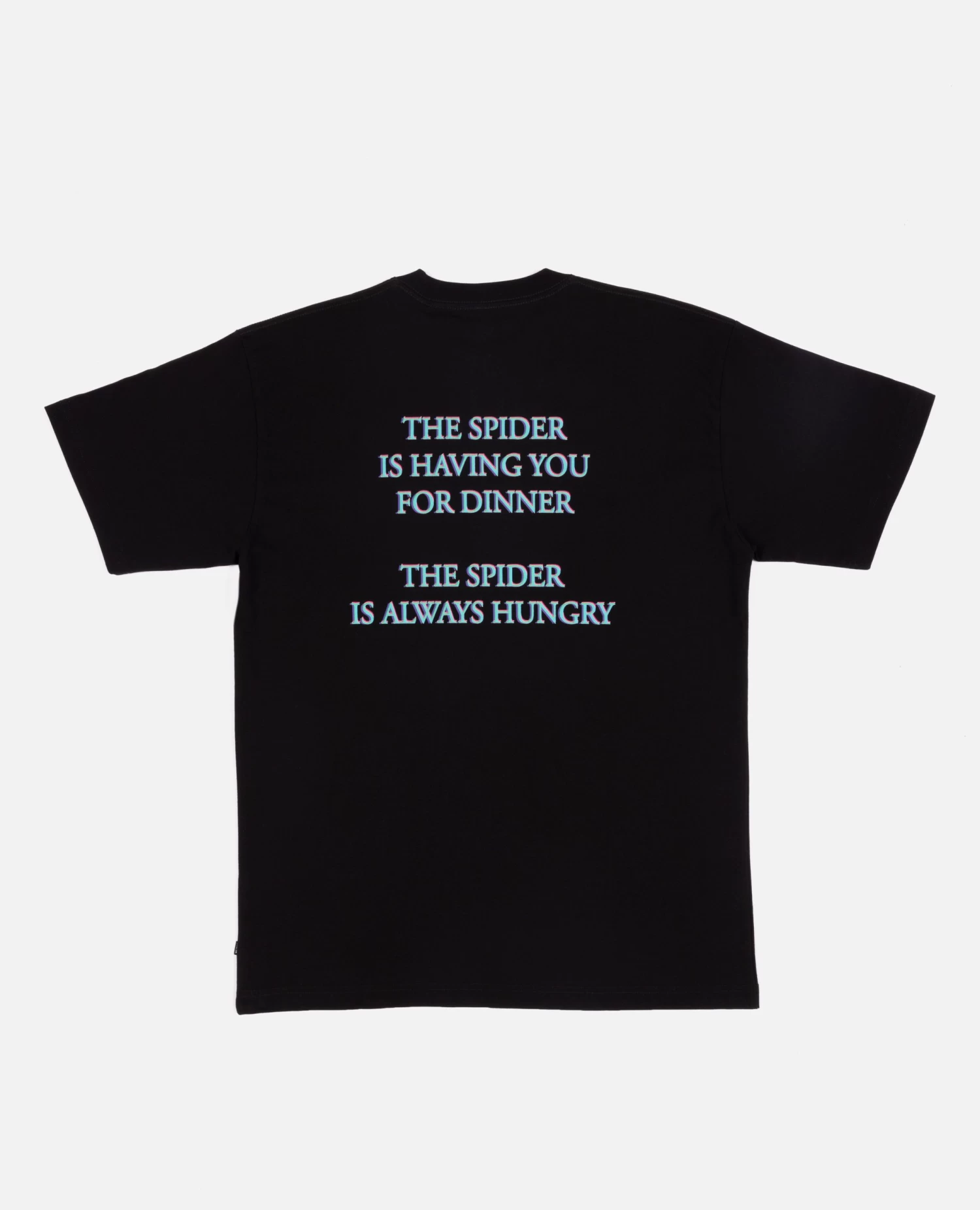 The Patta Spider T-Shirt is produced in 230gsm cotton. The front of the T-Shirt is adorned with a screen printed fluro ink Spider artwork together with a Patta script logo. The back sees a screenprinted ‘The Spider is always hungry’ text.