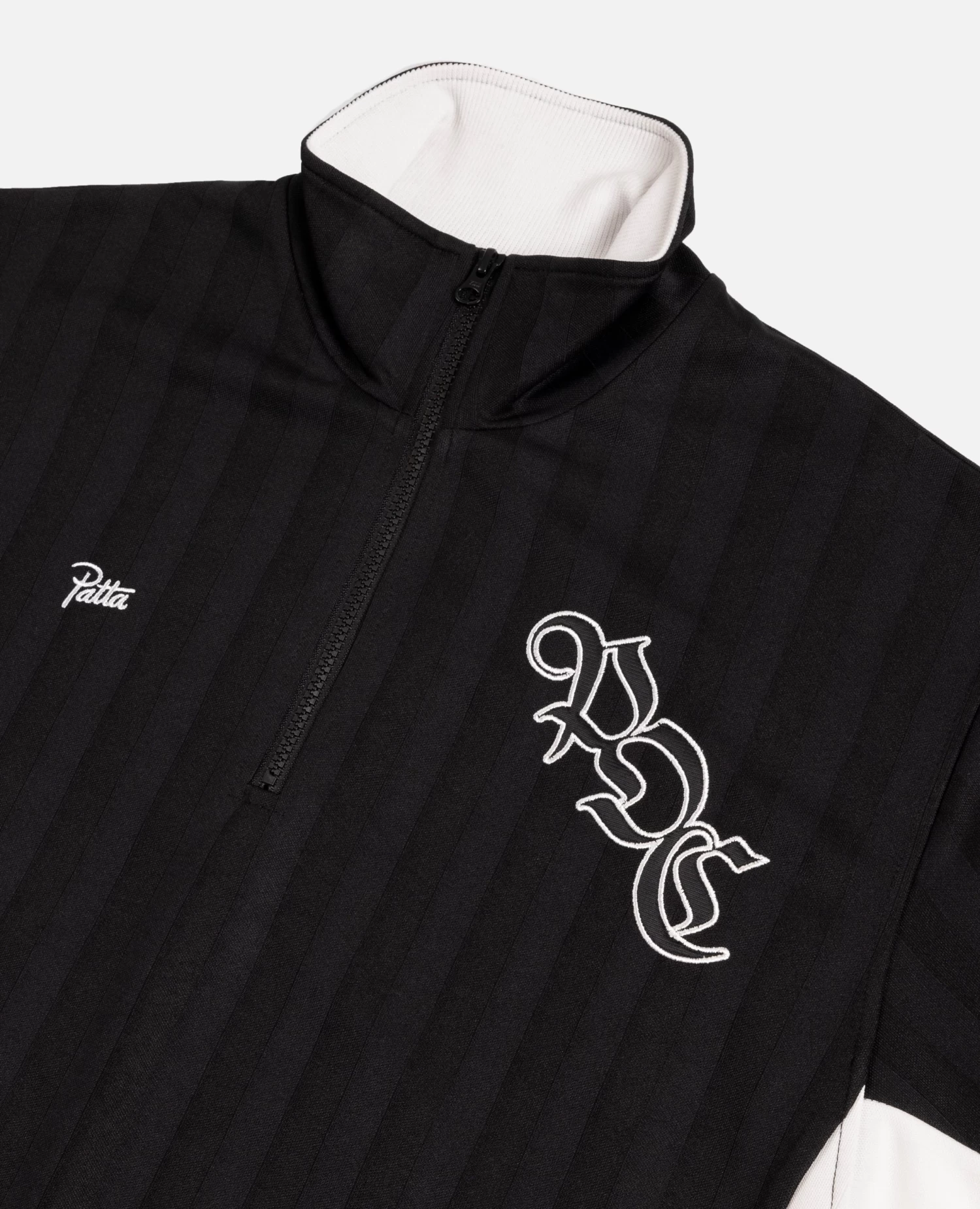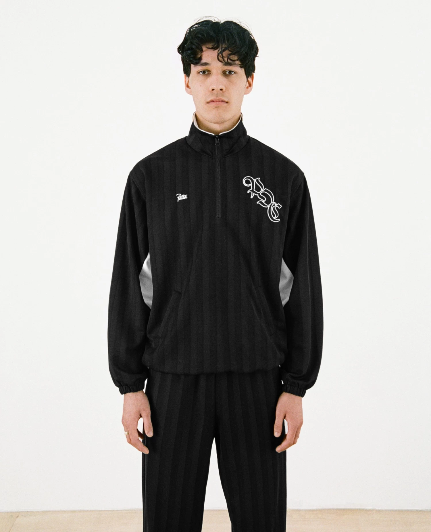 The Patta Tricot Stripe Track Top is produced in 100% Polyester with striped Jacquard details. The top is equipped with elasticated cuffs, jet pockets and a half zip. A POC applique sits on the left hand side of the chest with an embroidered Patta script logo on the right hand side of the chest.