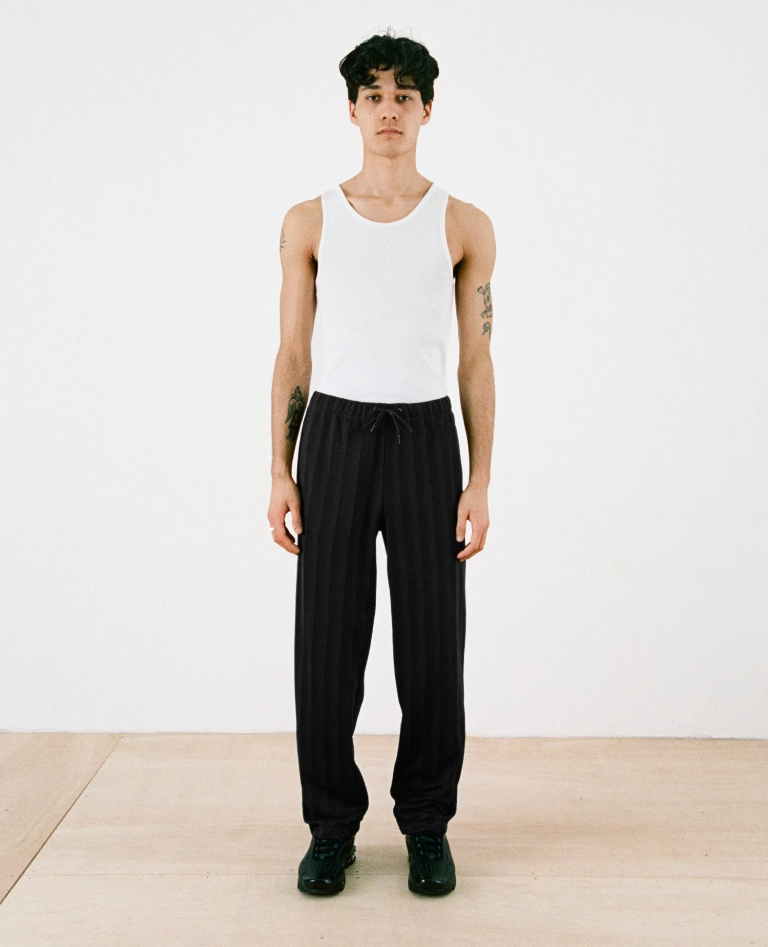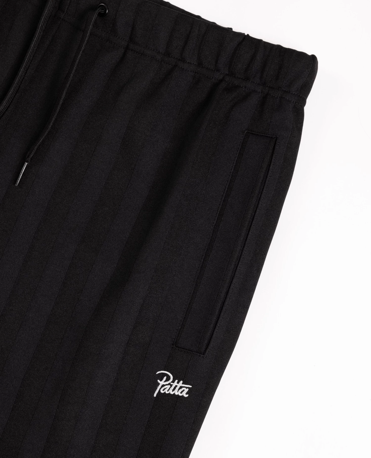 The Patta Tricot Stripe Track Pants is produced in 100% Polyester with striped Jacquard details and a straight fit. The pants are equipped with two jet pockets, an elasticated waistband with drawstrings and ankle detail with webbing cord. A Patta script logo embroidery sits on the left hand side of the hip.