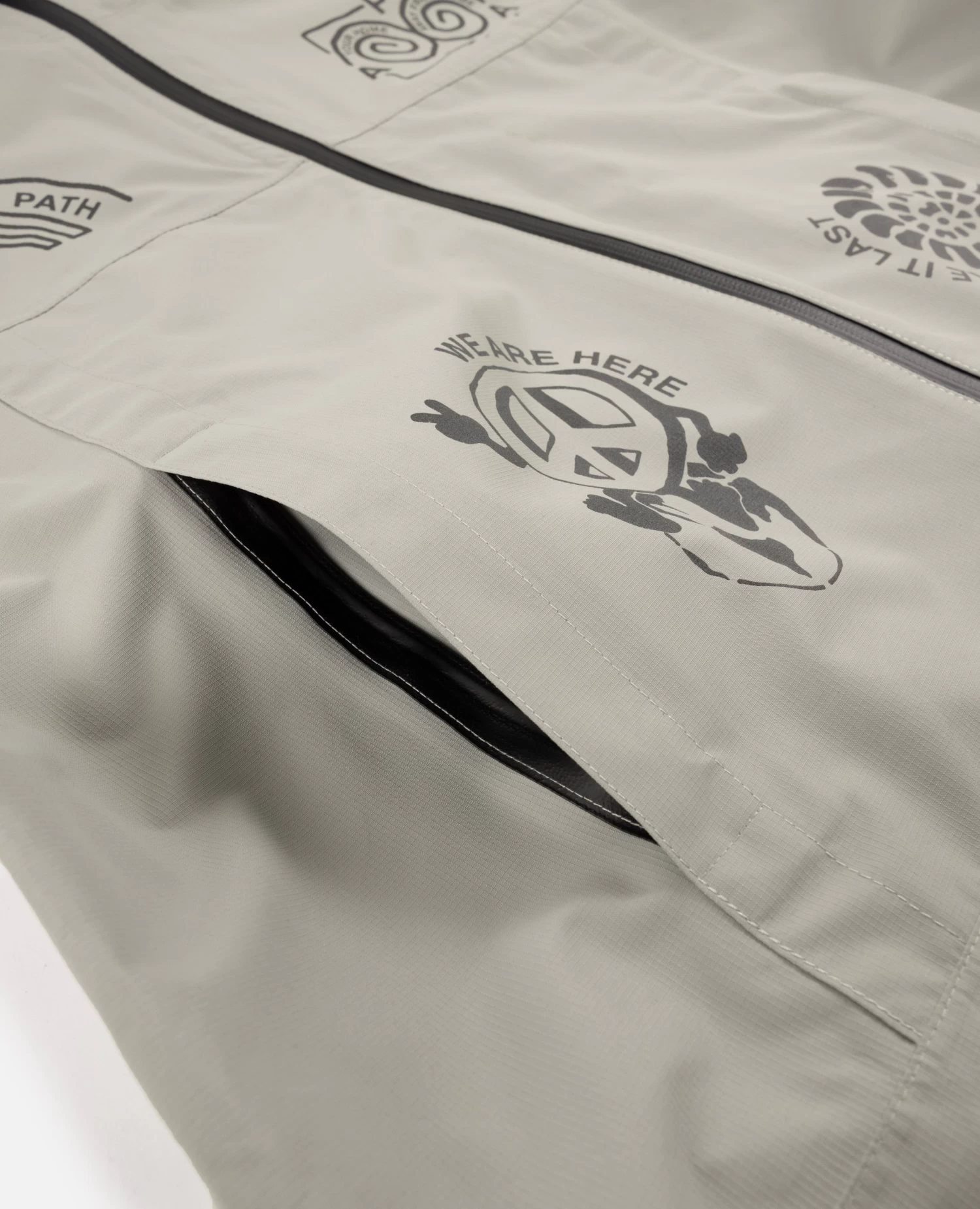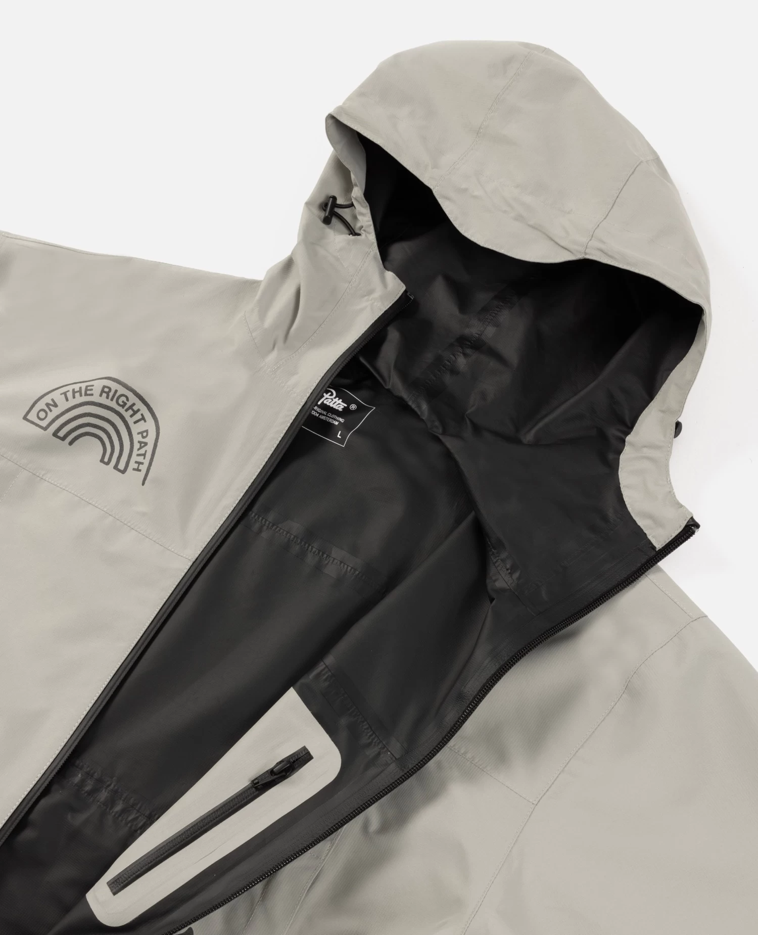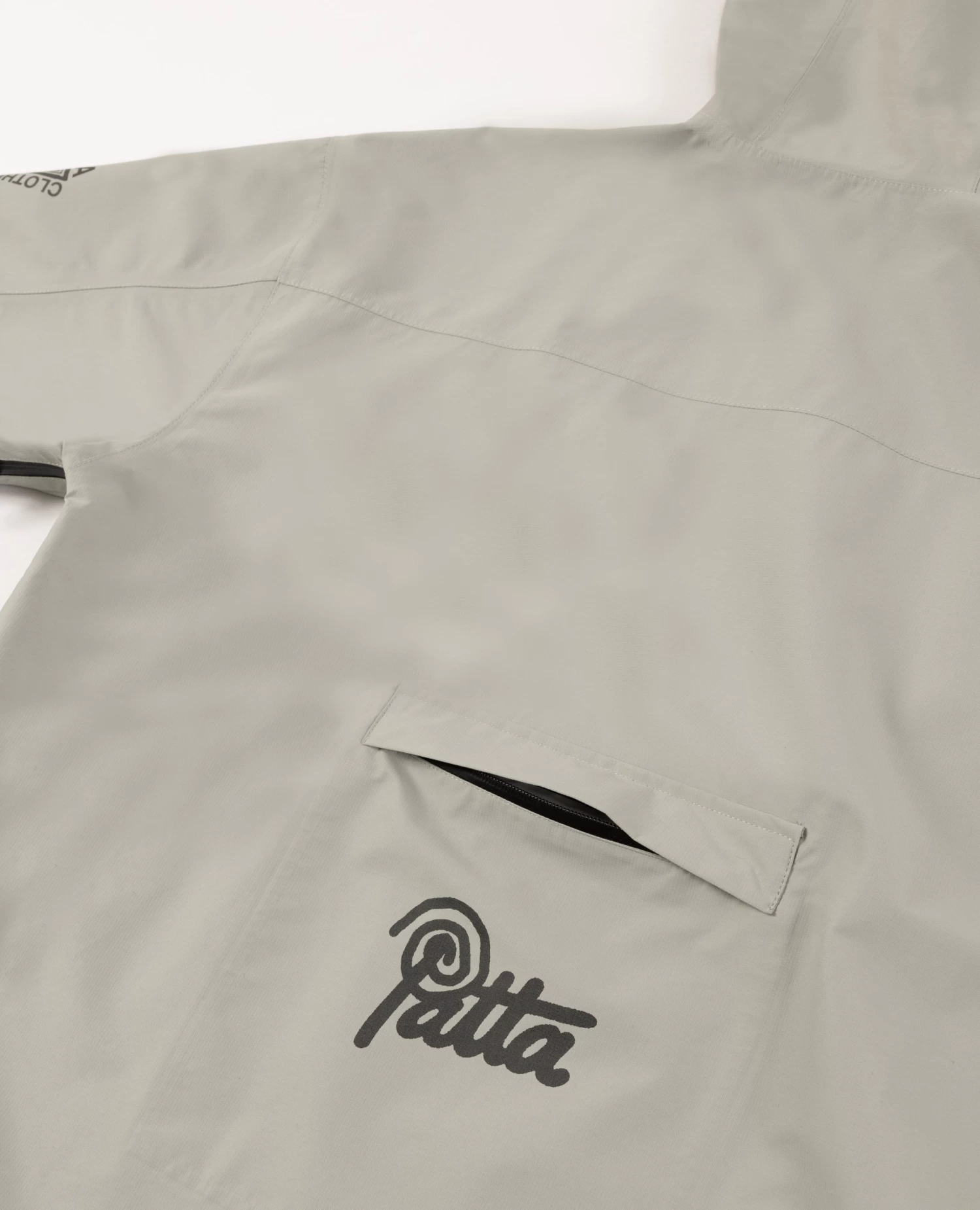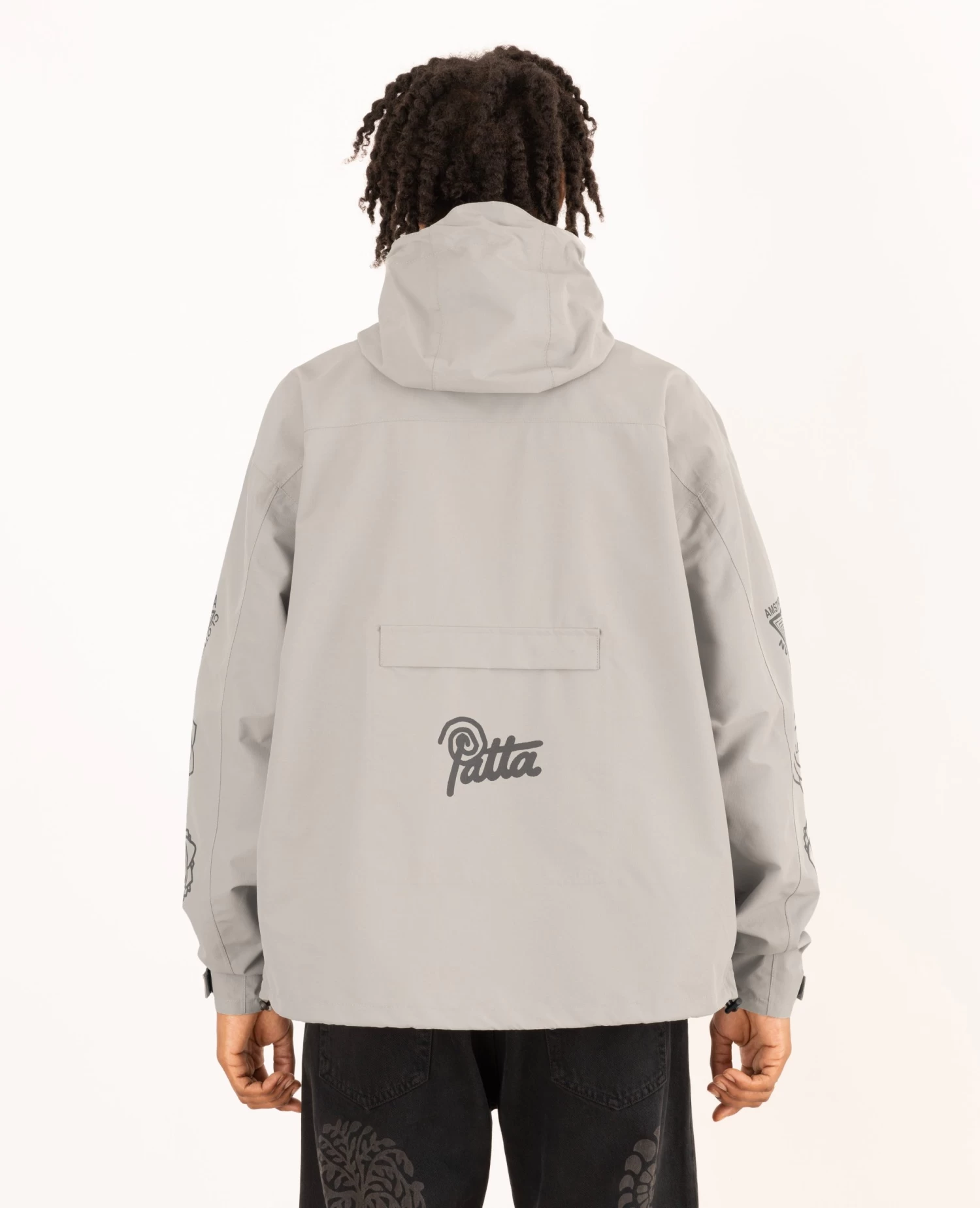The Patta Waterproof Reflective Shell Jacket is constructed in 100% polyester and is 100% water-repellent. Offering protection through a waterproof membrane, taped seams and aquaguard zips. The Shell Jacket is equipped with elastic cords at the hem and hood, zips at armpits for ventilation, two side pockets with zips and an interior pocket. Enriched with screenprinted 3M reflective prints allover and a small Patta script logo on the back.