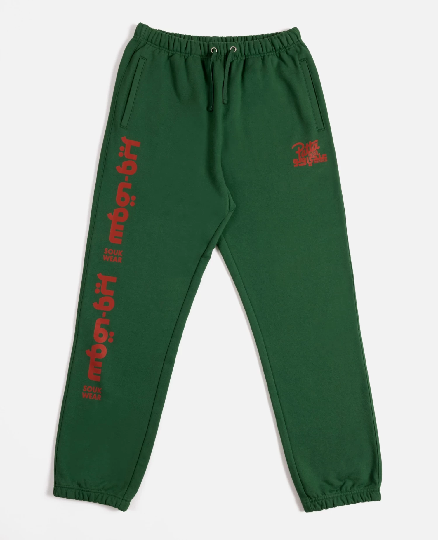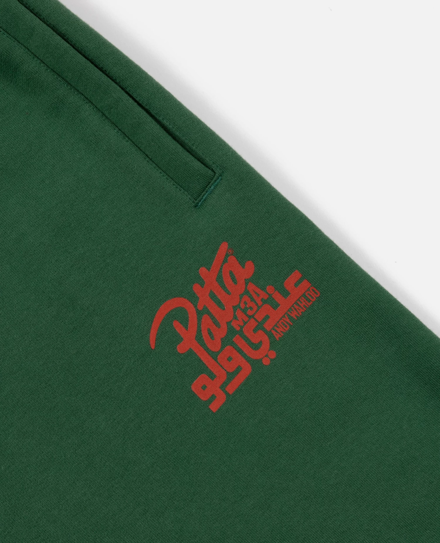Coming in 450gsm BCI soft brushed cotton, the Patta x Andy Wahloo (Hassan Hajjaj) Logo Jogging Pants comes with a cuffed ankle finish, drawstring waistband, side pockets and a jet pocket at the rear finish the pieces construction. Screen printed Patta x Andy Wahloo artworks sit on the right, left leg and back pocket.