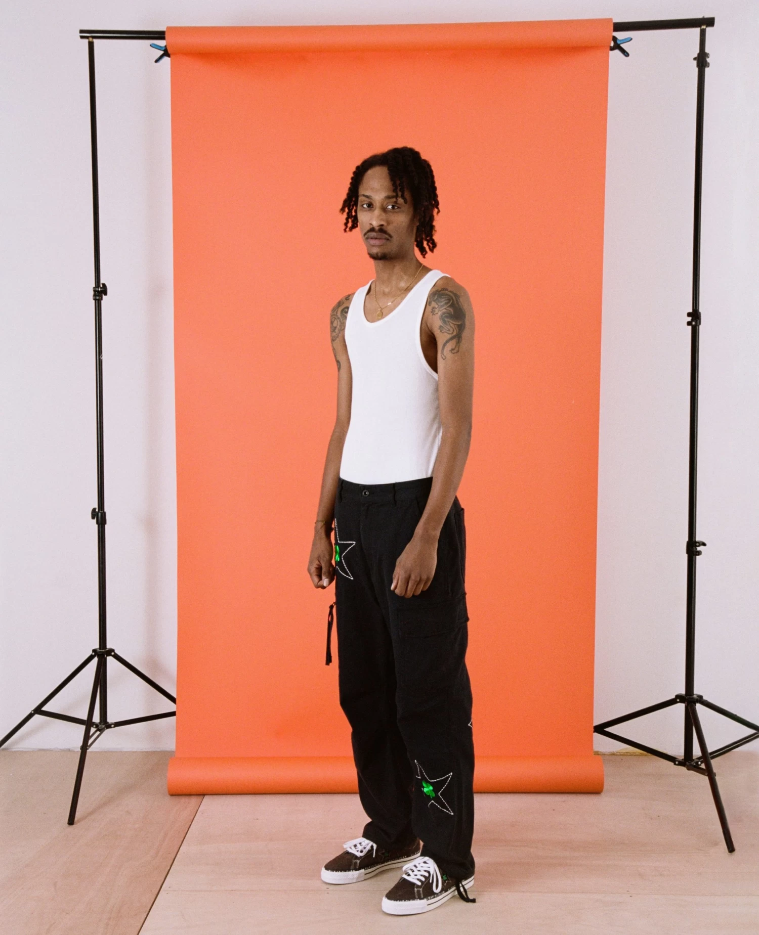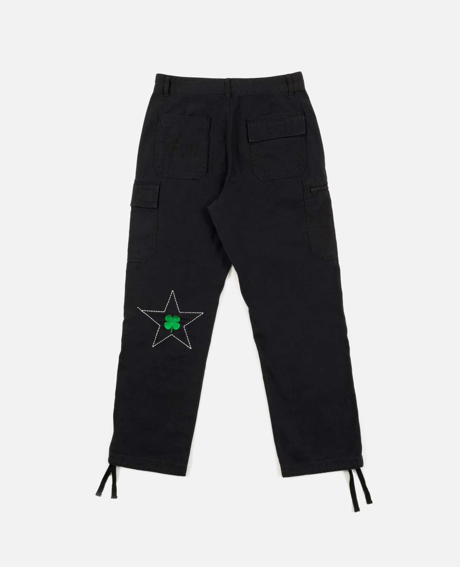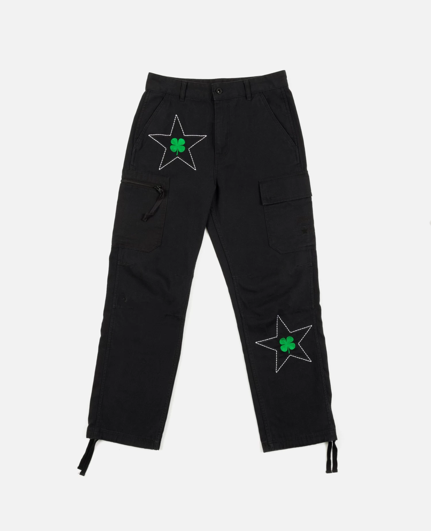 Enriched with black star appliqué with an embroidered 4 Leaf clover graphic throughout, an embroidered star chevron logo on right knee and an embroidered Patta graphic on left thigh and back pockets.