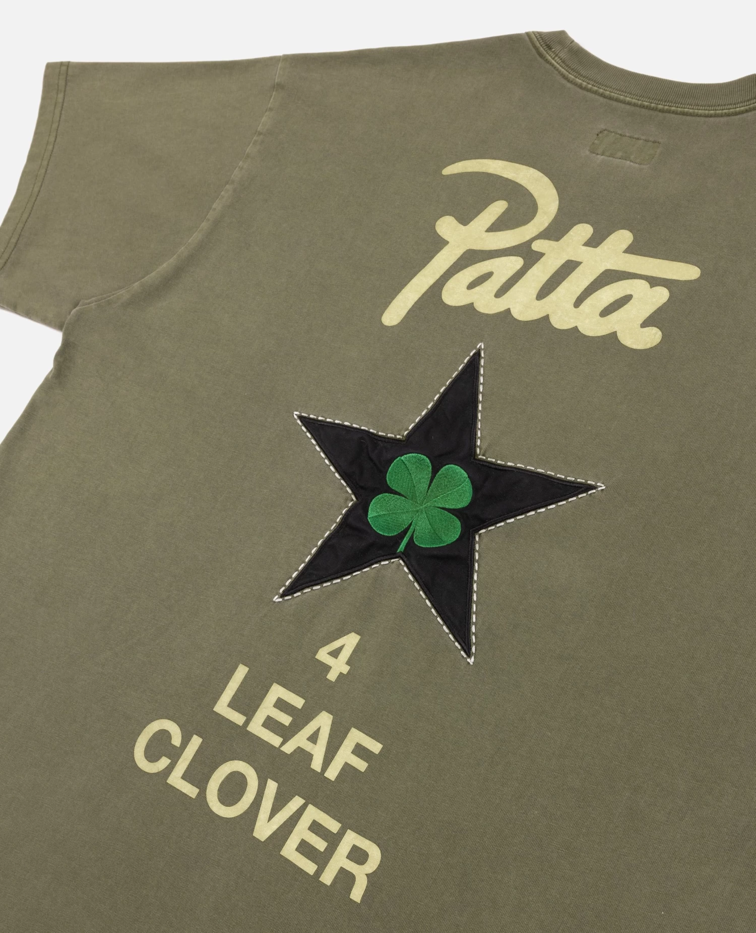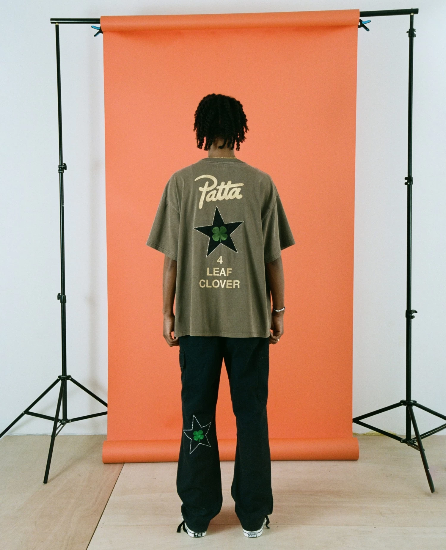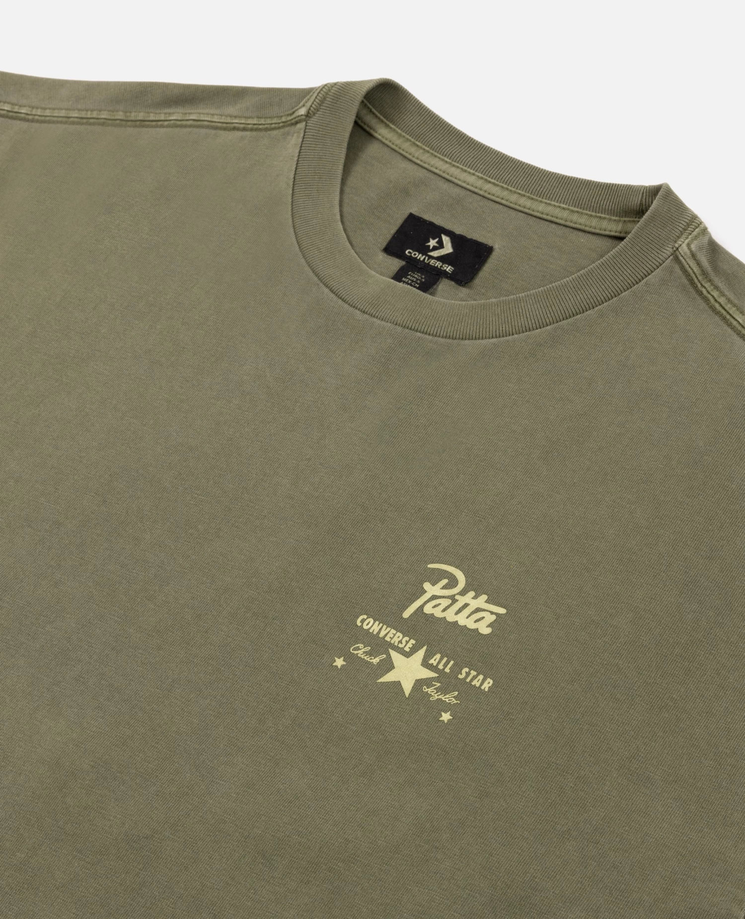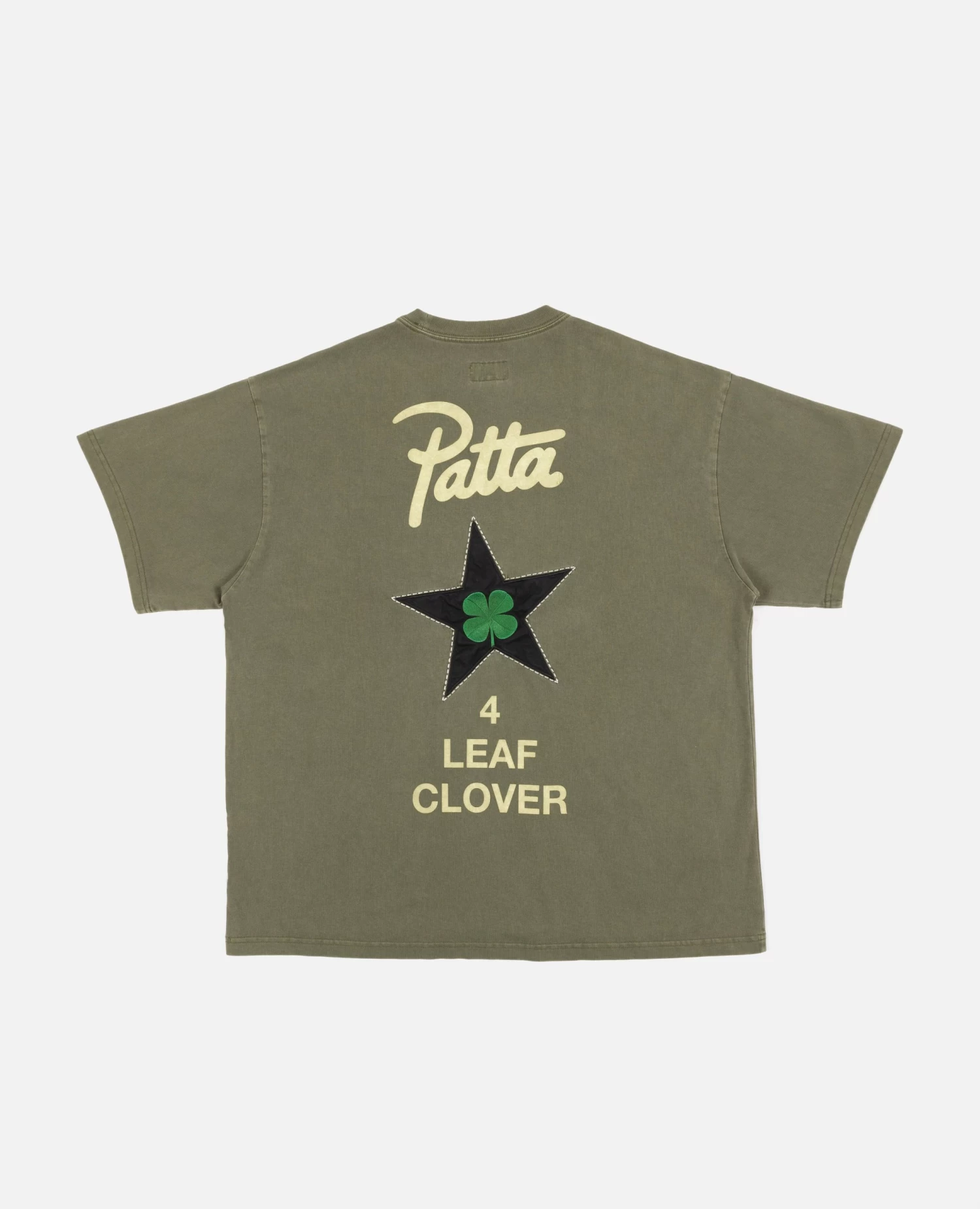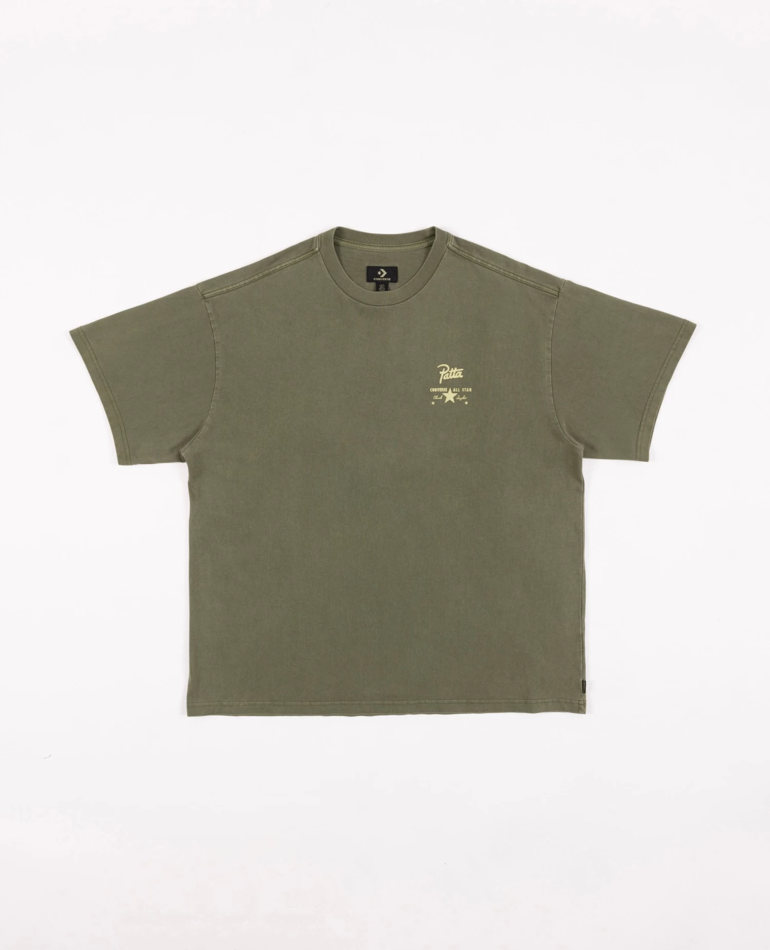 The Patta x Converse 4 Leaf Clover T-Shirt is constructed in enzyme-washed cotton and has an oversized fit. Enriched with rubber screen printed graphic on the left hand side of the chest and a screen printed star patch embroidered with a 4 Leaf Clover graphic on the back. Available in two colourways.