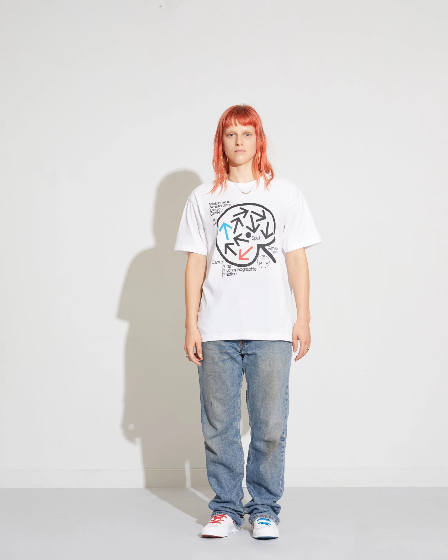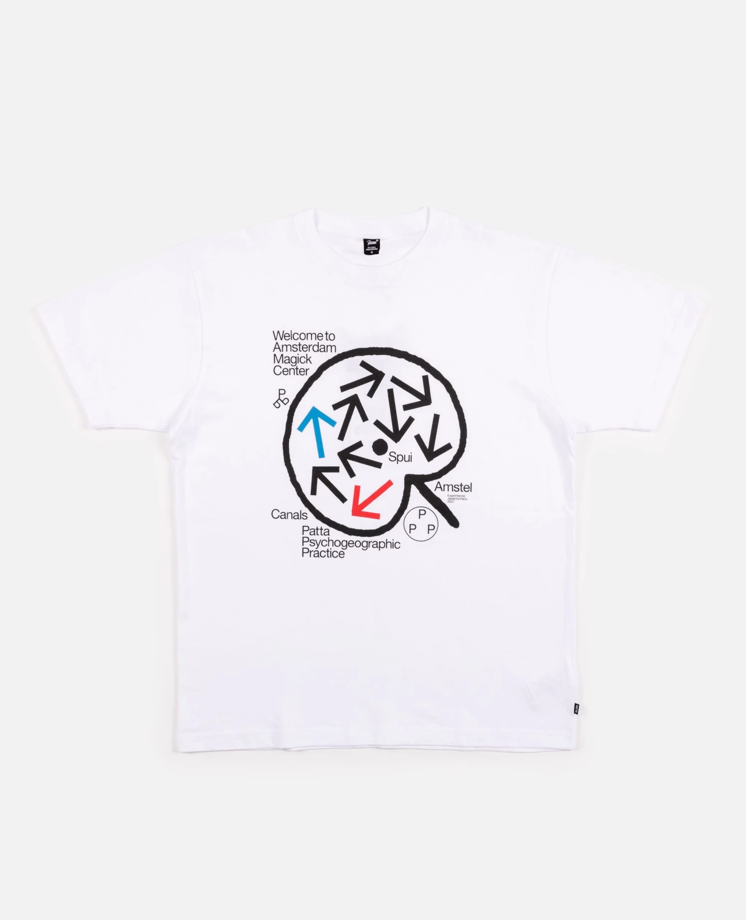 The Patta x Experimental Jetset Magick Center T-Shirt is produced in 180gsm cotton. A Patta woven tab features above the left hand side of the bottom hem. The T-shirt is adorned with a psychogeographic spin. Harnessing the aesthetic of metropolitan maps and directional signage through silk screen graphics on the front. Available in two iterations.