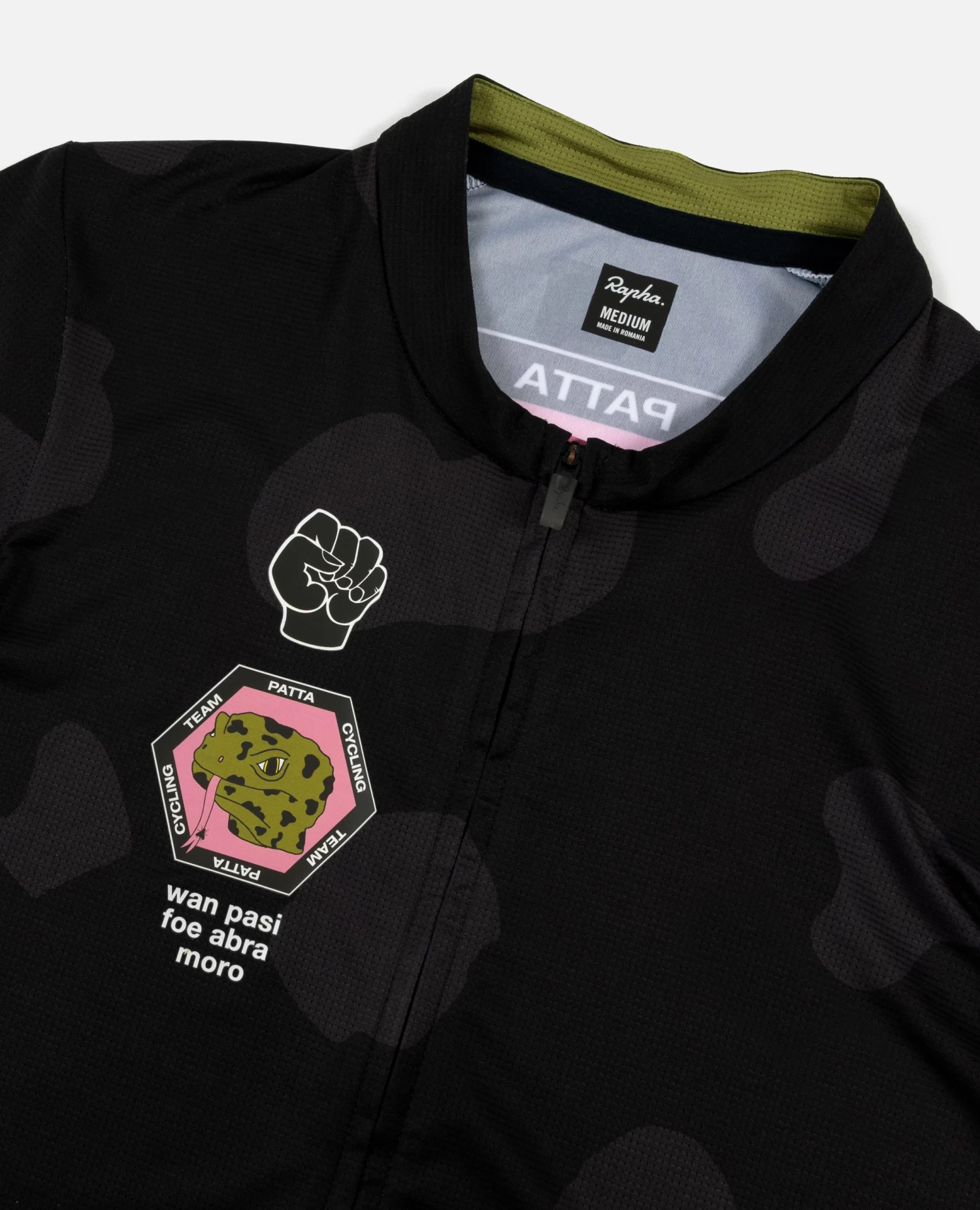 The Patta + Rapha kit and cycling team logo is designed by Patta’s Creative Director Vincent van de Waal, the on-bike collection brings together Patta’s trademark style with Rapha’s expertise in cycling performance.